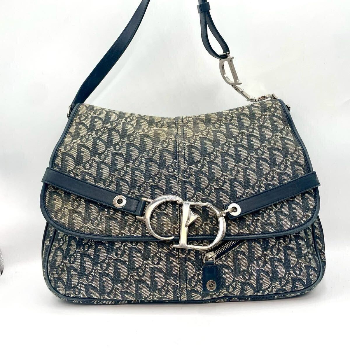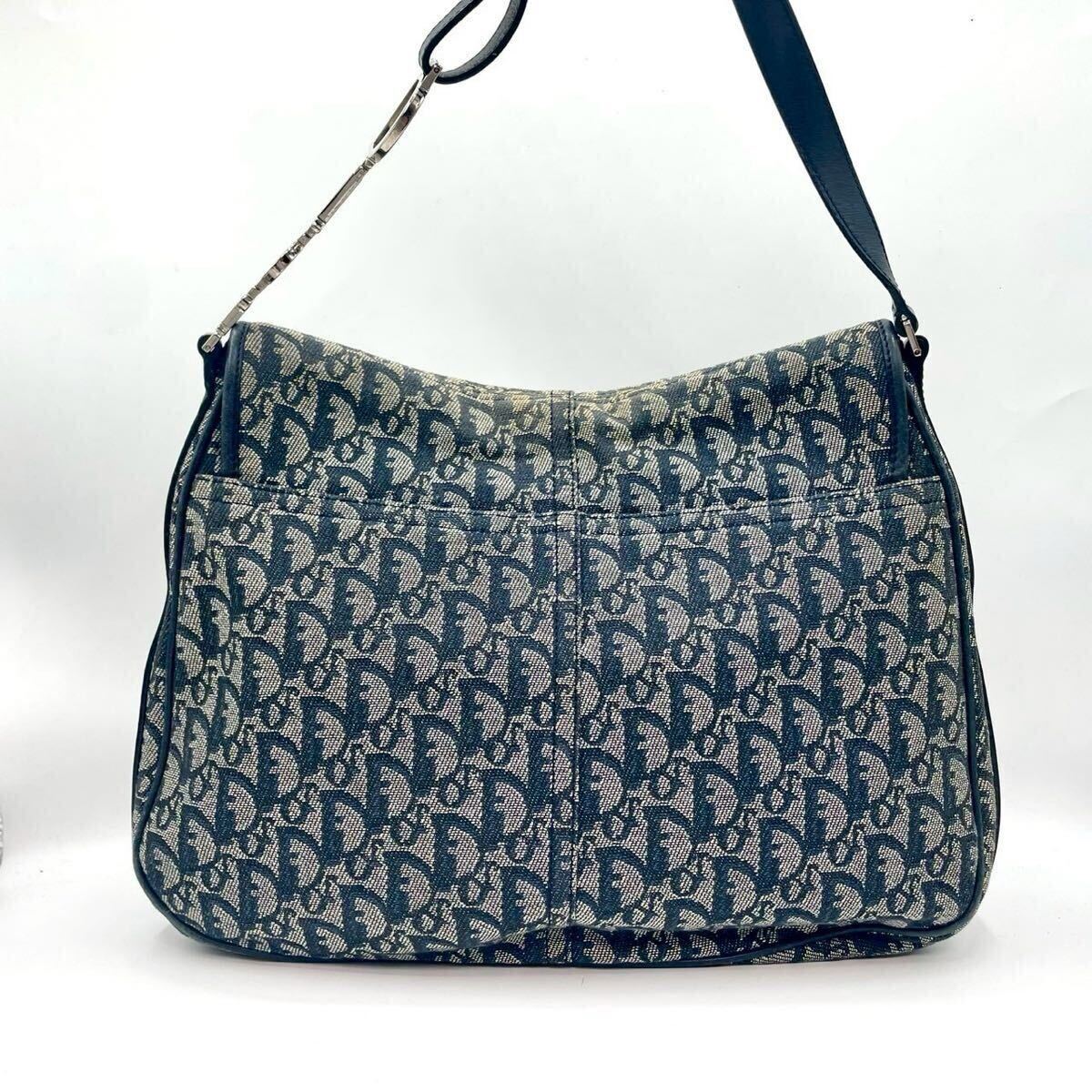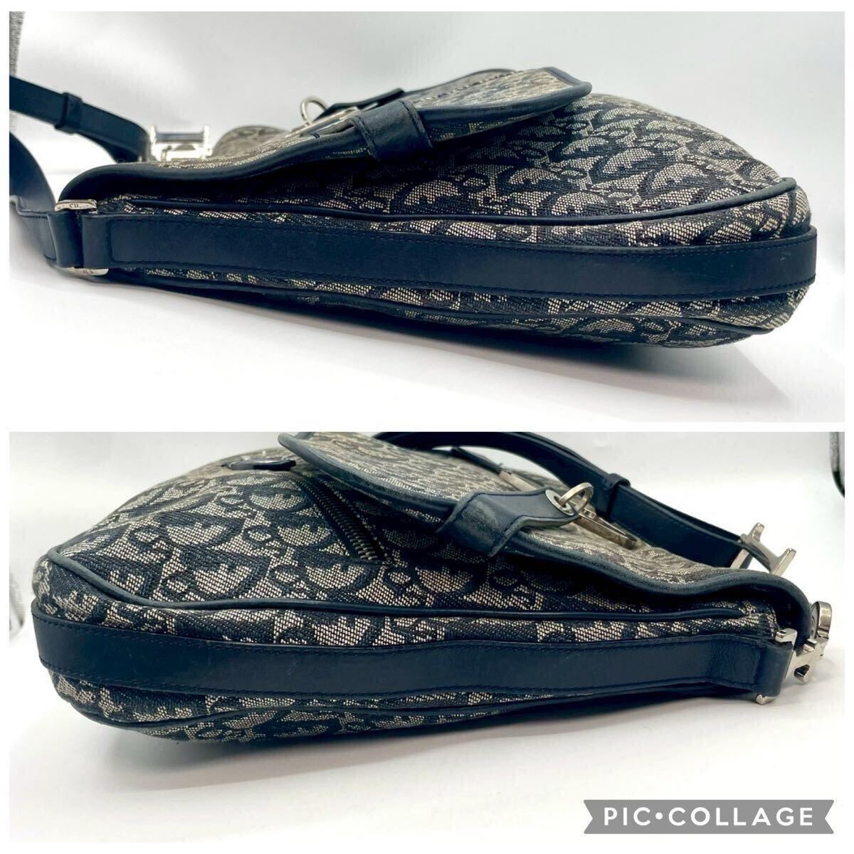 1円 ◎美品◎ Dior ディオール ショルダーバッグ 斜め掛けトロッター CD金具 ロゴショルダー サドル キャンバス ネイビー レディース