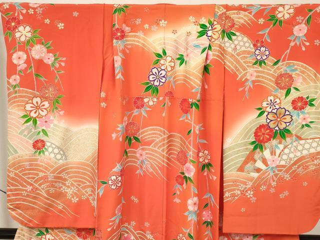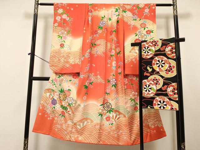 【祝着】 身丈 135.5cm(肩から) 裄丈 52.5cm(肩上げ 4cm) 袖丈 72.5cm 縫込み 2.5cm 袖幅 33cm 前幅 21cm 後幅 27cm 着物縫いこみ 内揚げ 2cm (腰上げ 0cm) 裄 お袖側 約2.5cm 身頃側 約1cm 【帯】 長さ 376cm 幅 26cm程 《 サイズについてはこちら 》 |