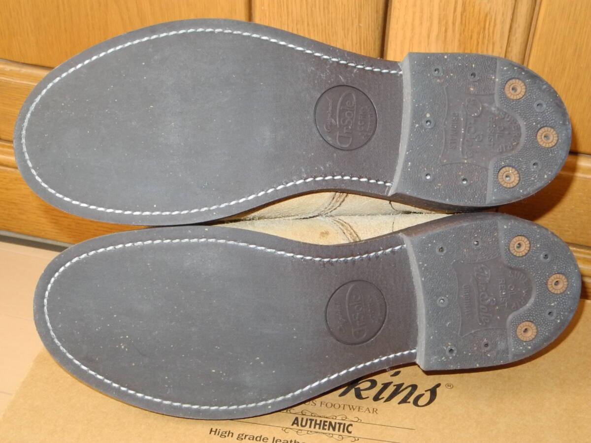 中古品になります。 着用・保管に伴う擦れ、汚れ等あります。 オリジナルのトラクションソールが擦り減った為、ドクターソールに変更してリペアしています。 リペア時、左つま先のステッチにずれが出ています。 使用に支障は有りませんが、気になる方はお控えください。 感じ方、考え方は個人差があります。 少しでも気になる方は、お控えください。 素人の自宅保管品ですので、神経質な方や、新品にこだわりがある方はお控えください。 |