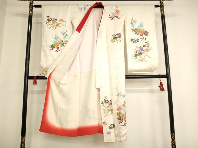 【祝着】 身丈 134.5cm(肩から) 裄丈 59.5cm(肩上げ 0cm) 袖丈 75cm 縫込み 4cm 袖幅 32cm 前幅 20.5cm 後幅 26.5cm 着物縫いこみ 内揚げ 10.5cm (腰上げ 0cm) 裄 お袖側 約3.5cm 身頃側 約6.5cm 《 サイズについてはこちら 》 |