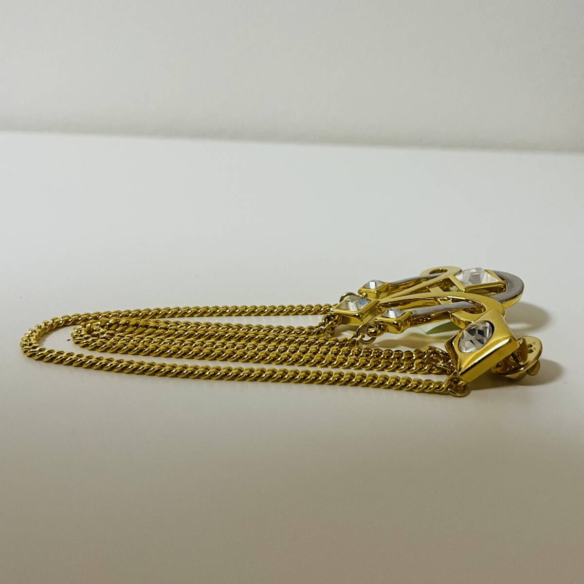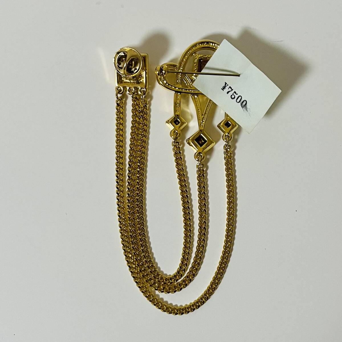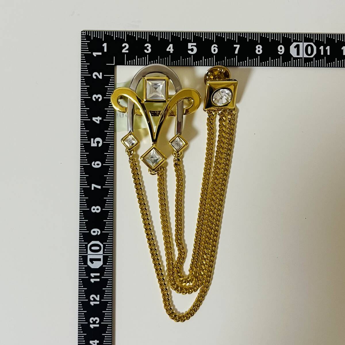 348③アンティーク ビンテージ アクセサリー ブローチ 未使用保管品!ゴールドカラー ラインストーン 海外製