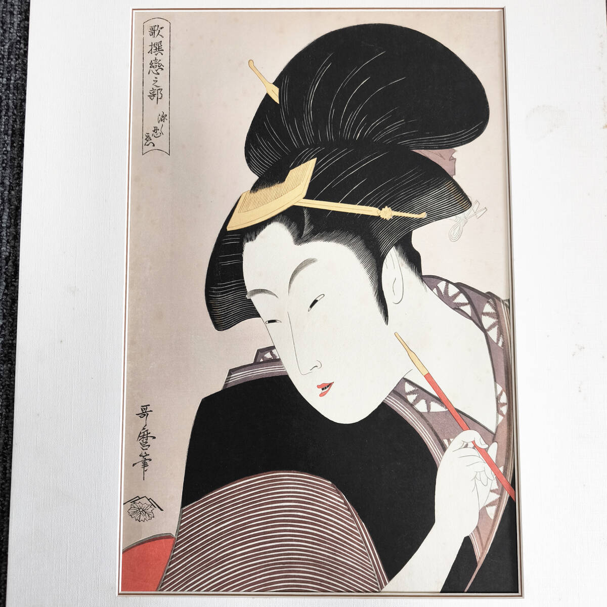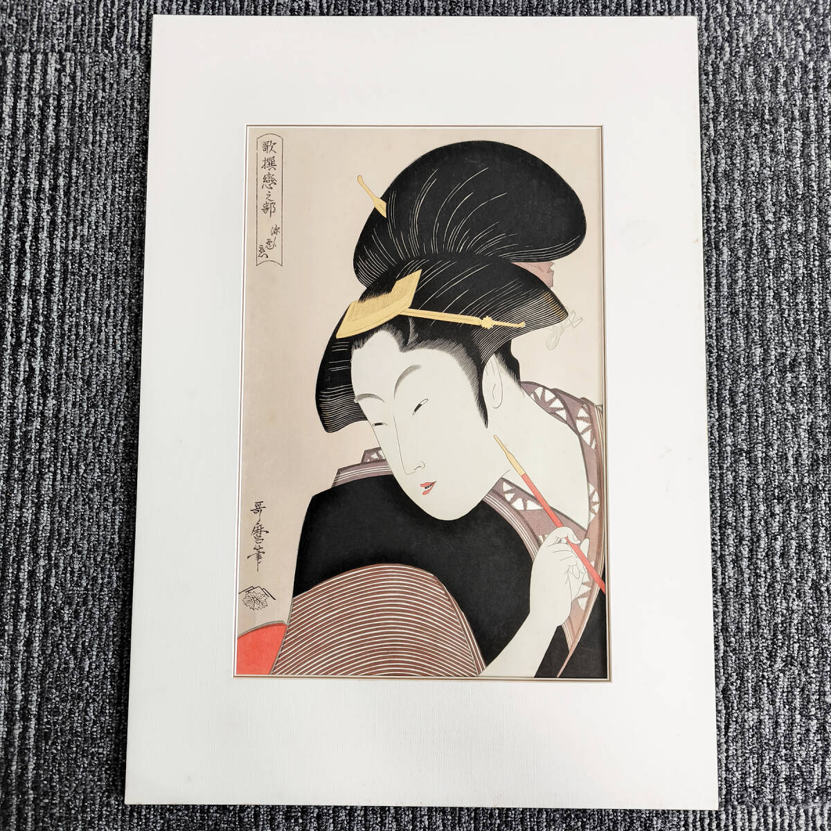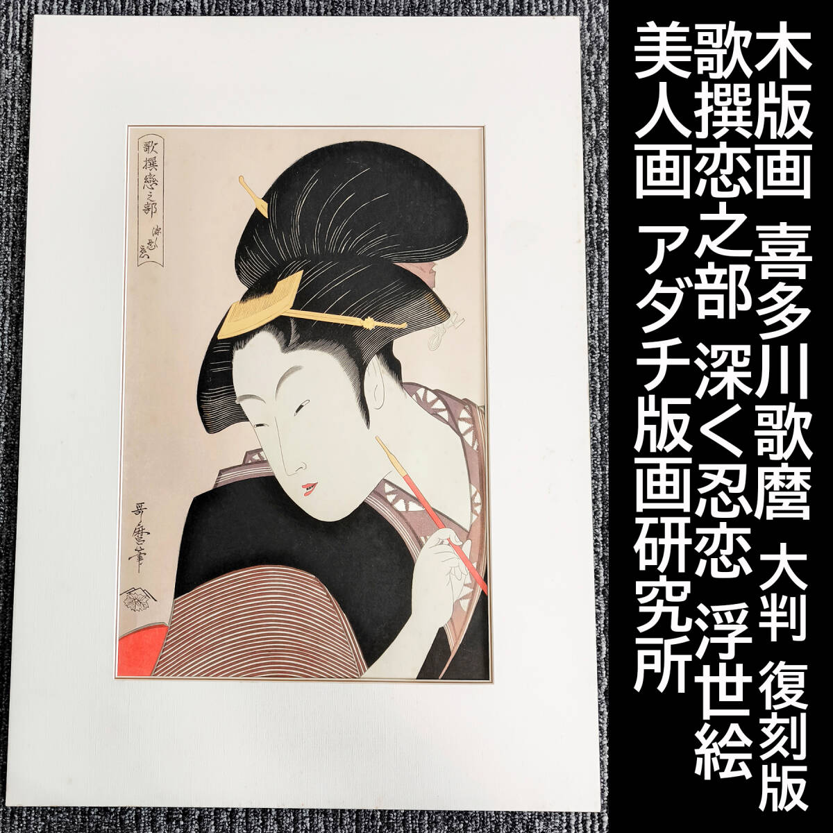 木版画 喜多川歌麿 歌撰恋之部 深く忍恋 大判 復刻版 浮世絵 美人画 アダチ版画研究所