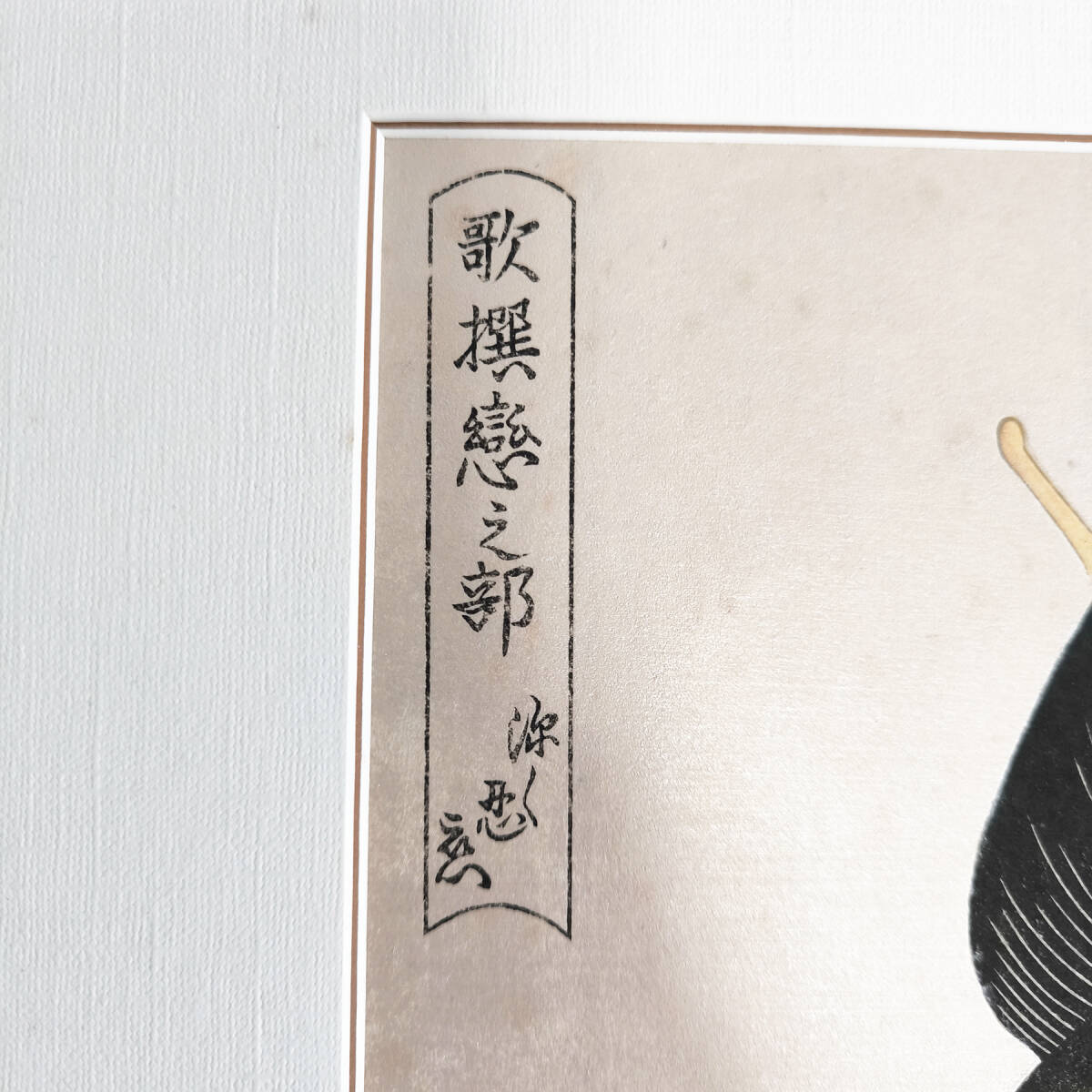 「歌撰戀之部」は、背景を紅雲母摺(べにきらずり)とした美人大首絵5枚揃いシリーズで、歌麿は女性の年齢や表情、仕草を描き分け恋する女性の心の襞までを描き出そうとしている。
