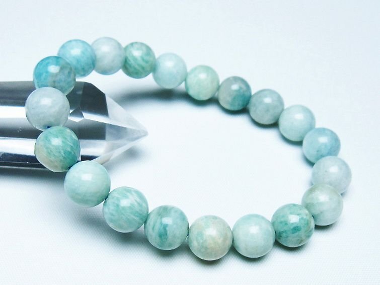 | ■商品名: アマゾナイトブレスレット ■商品ID: T161-12015 ■商品重量:約 27.6g ■商品サイズ:内周約:165mm(±5mm)粒直径約:10mm(±0.5mm) 【アマゾナイト(天河石)】 アマゾナイトは古くから「希望の石・ホープストーン」として愛されてきたパワーストーンです。アマゾン川にちなんで付けられた名前とされていますが、実際にはアマゾンでは採掘されません。 長石の一種なのでムーンストーン(月長石)が同じグループにある石になります。 長石であるエピソードとして、高品質なアマゾナイトにはムーンストーンの様なシラーが見られます。 なお、同種の長石類であるマイクロクリン(微斜長石)に微量の鉛が含まれブルーグリーンになったものがアマゾナイトと分類されます。 アマゾナイトはストレスを解消して精神と肉体の調和を図り、思考力、想像力なども高めてくれるとされています。 また、肉体と精神のように対になる要素双方を補い、エネルギー与える効果があると伝えられています。 ⇒ アマゾナイトをもっと詳しく ◆ワンポイント情報 柔らかな色合いがその効果を示すように、持つ人へ優しく寄り添ってくれるようなストーンです。 繊細な感情を持っている自負のある方には特におすすめで、精神面のサポートにより新たな自分へ到達するきっかけを与えてくれるかもしれません。 |