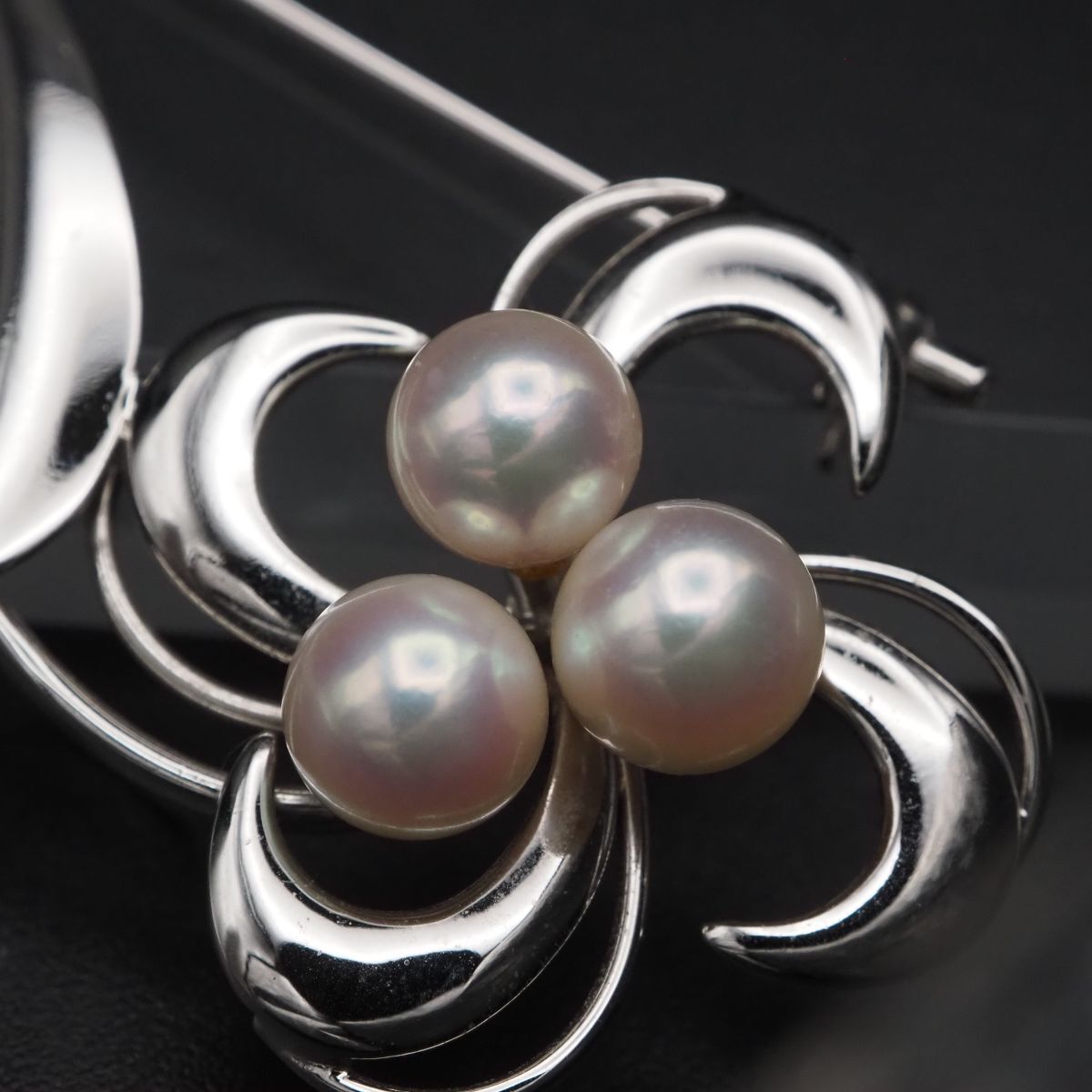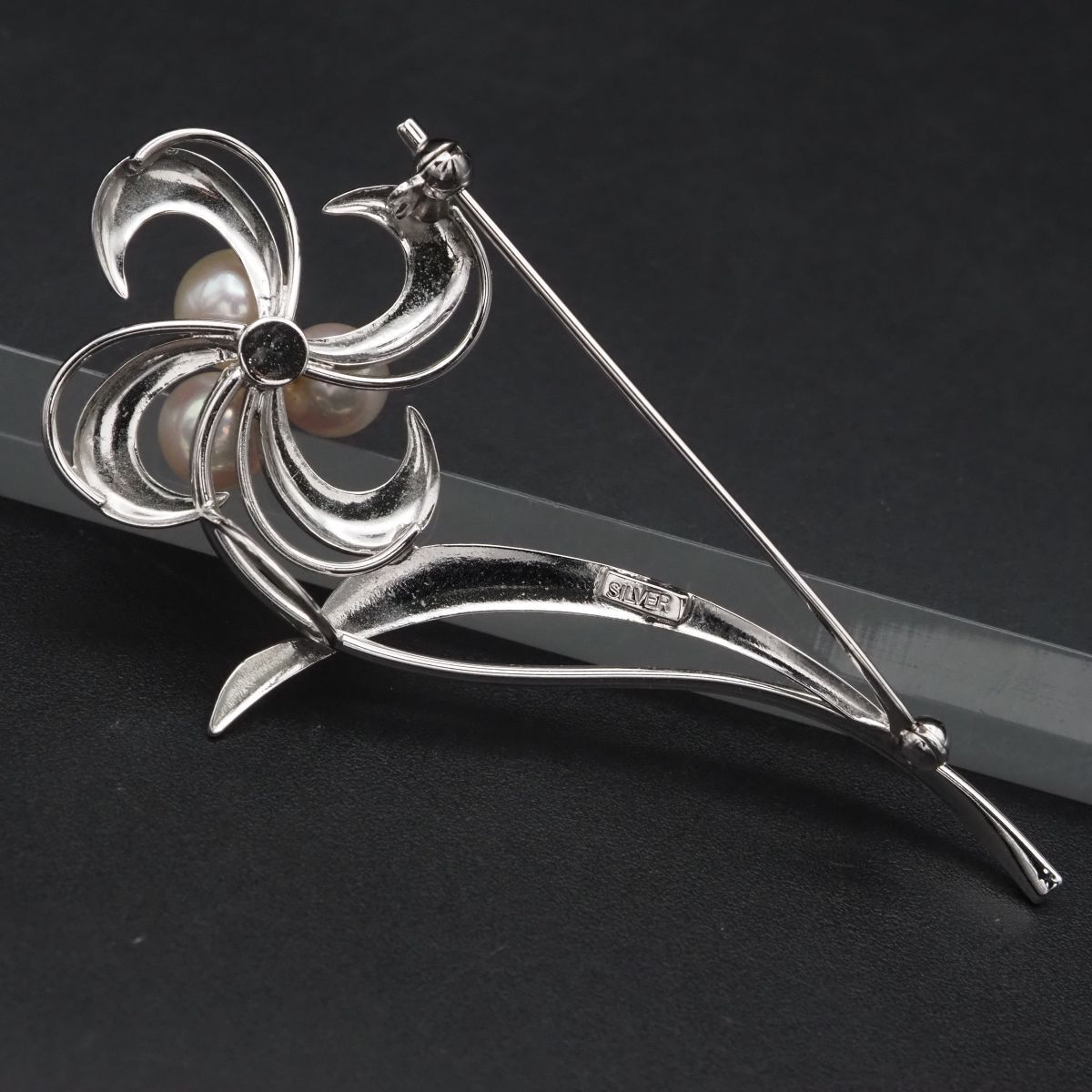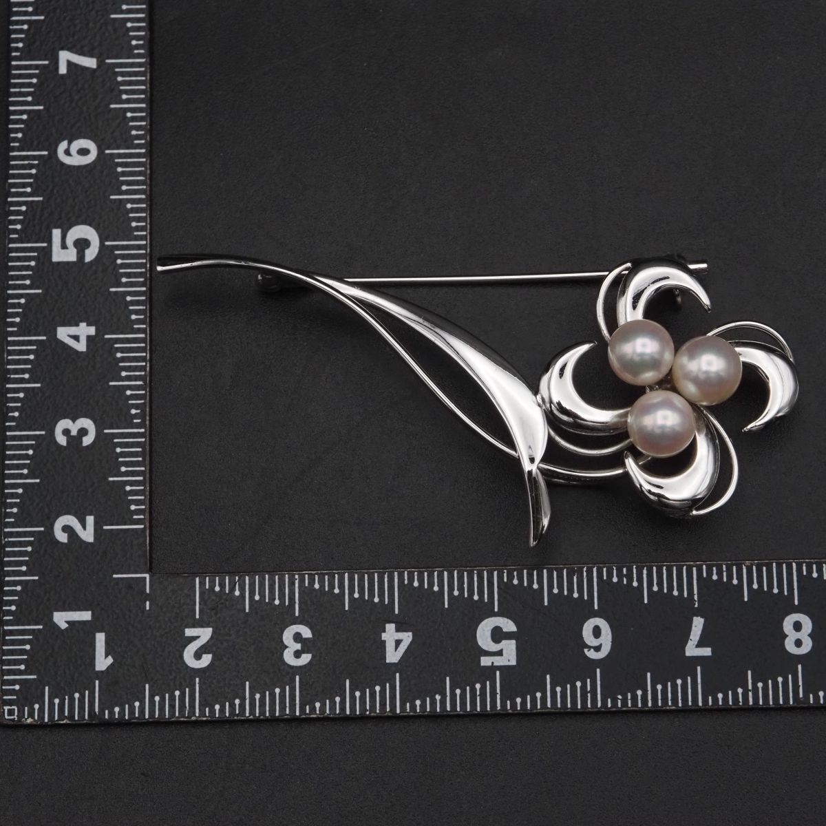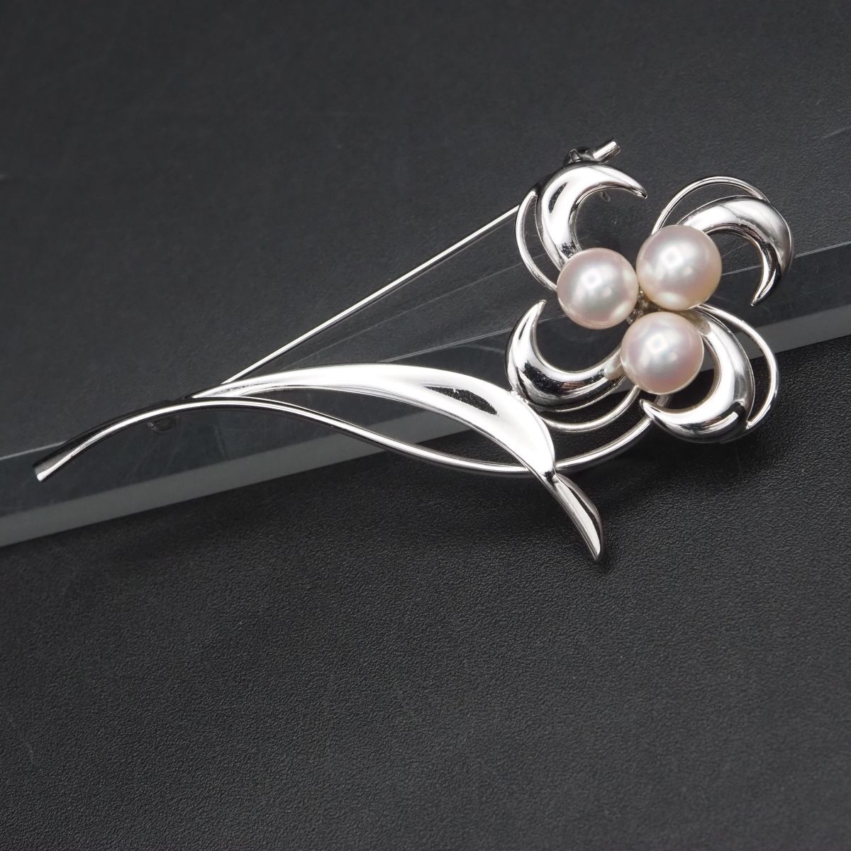 F639 本真珠 6.6-6.9mm3珠 パール SILVER刻印 ブローチ フラワー デザイン シルバー コサージュ 6月誕生石