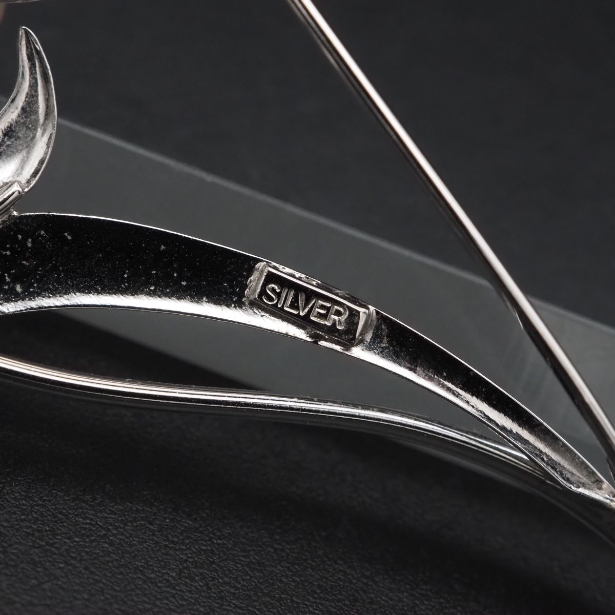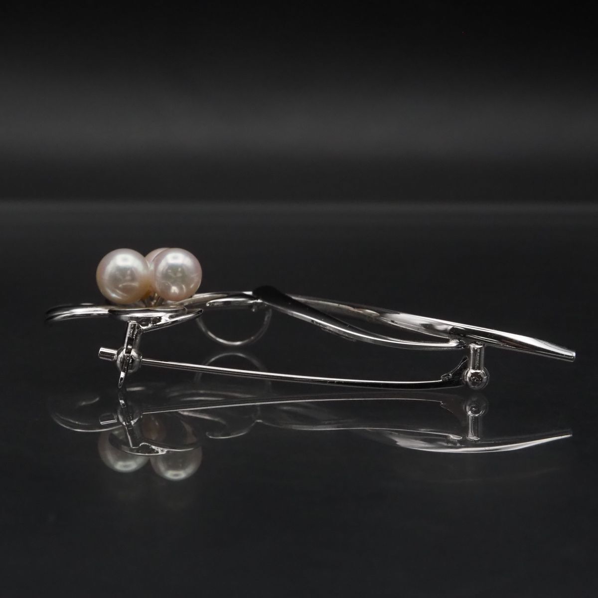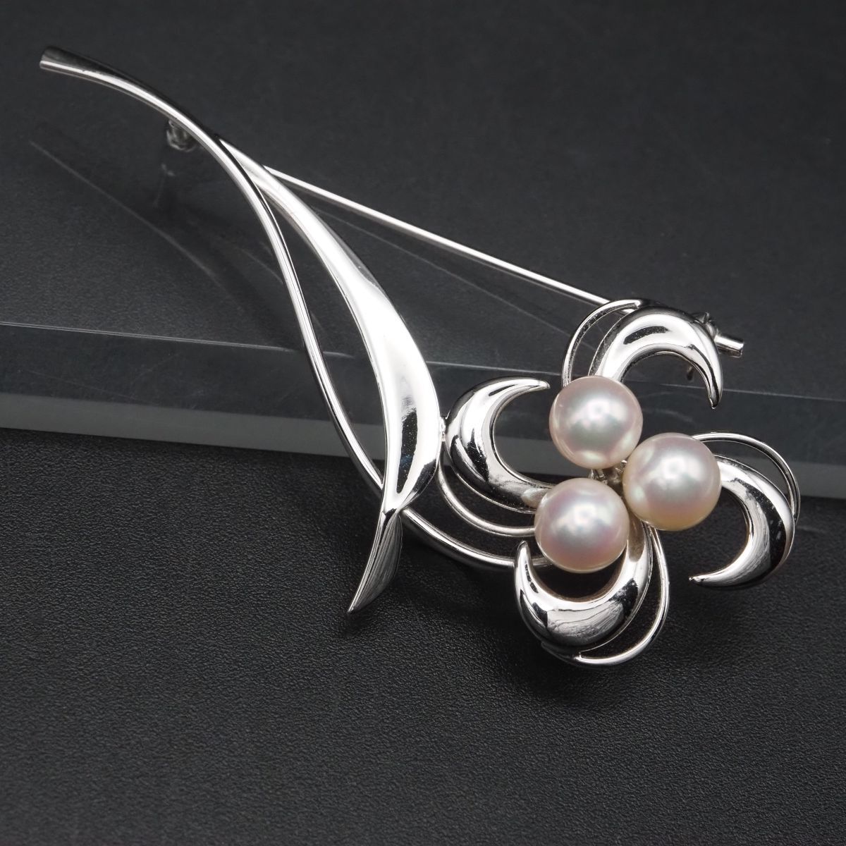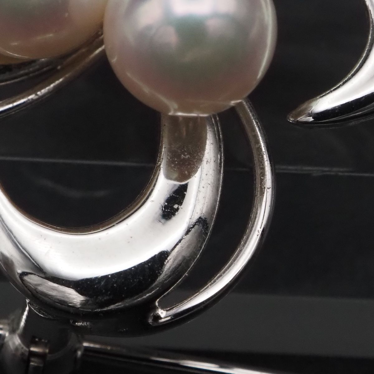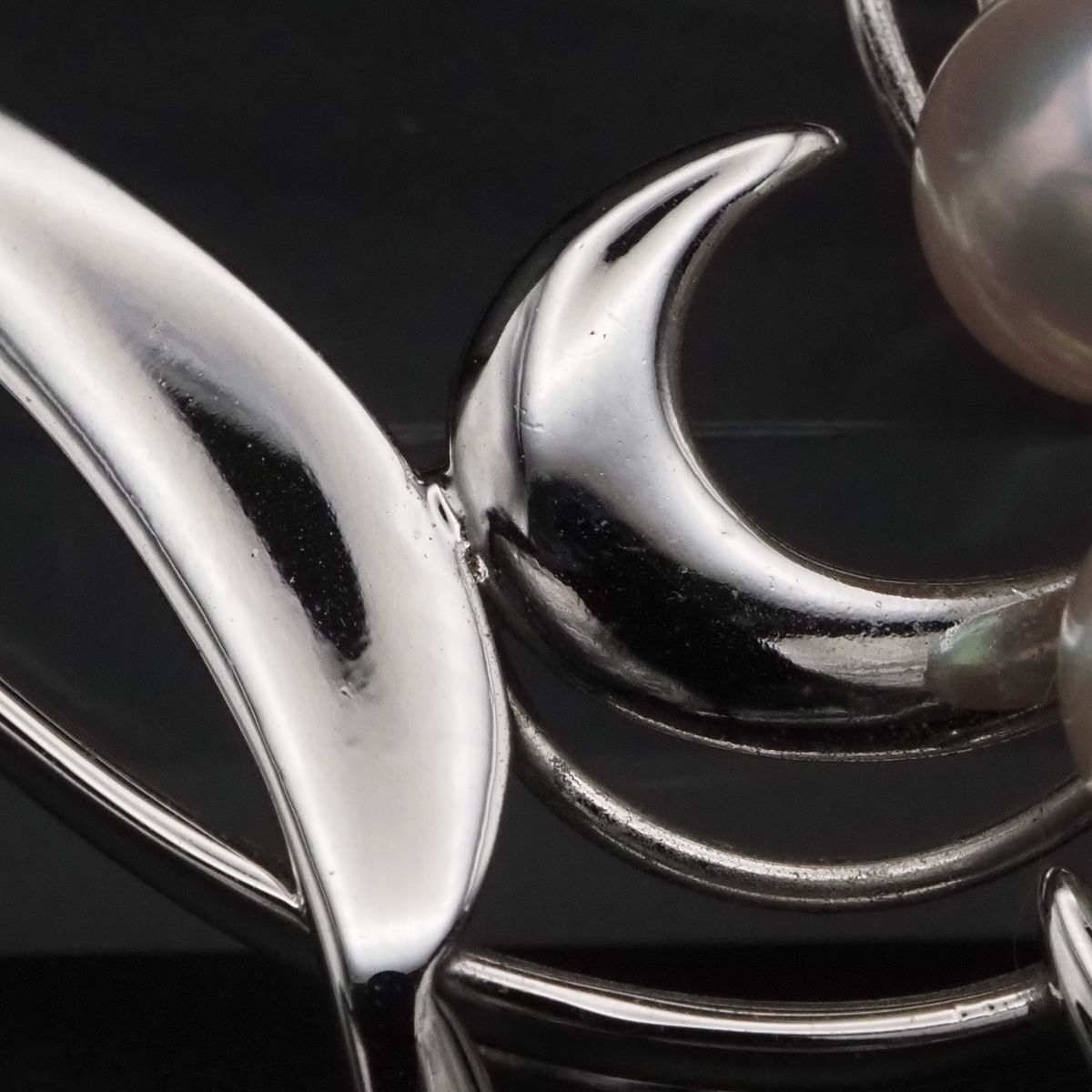 F639 本真珠 6.6-6.9mm3珠 パール SILVER刻印 ブローチ フラワー デザイン シルバー コサージュ 6月誕生石