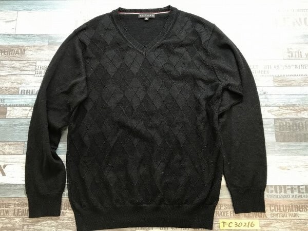 VILLAND ビランド しまむら メンズ Vネック アーガイル柄 ウール アクリルニットセーター M 黒 です。