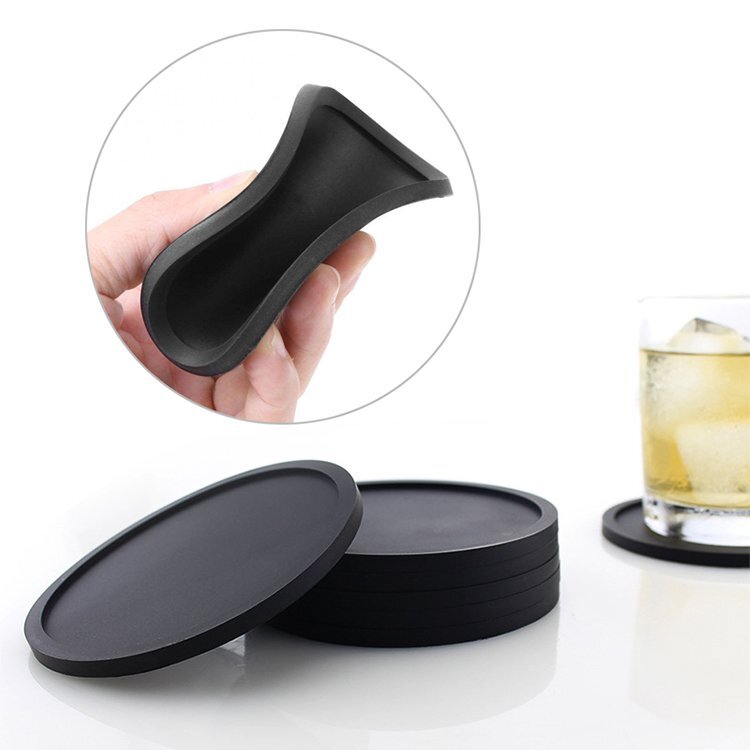 ◆シリコン製コースター 6枚セット ブラック 丸型 耐水 耐熱コースター ソフトシリコン素材 立体型 凹面で水滴をキャッチ ノンスリップ カップホルダー お手入れ簡単 シンプルデザイン CCSS06S