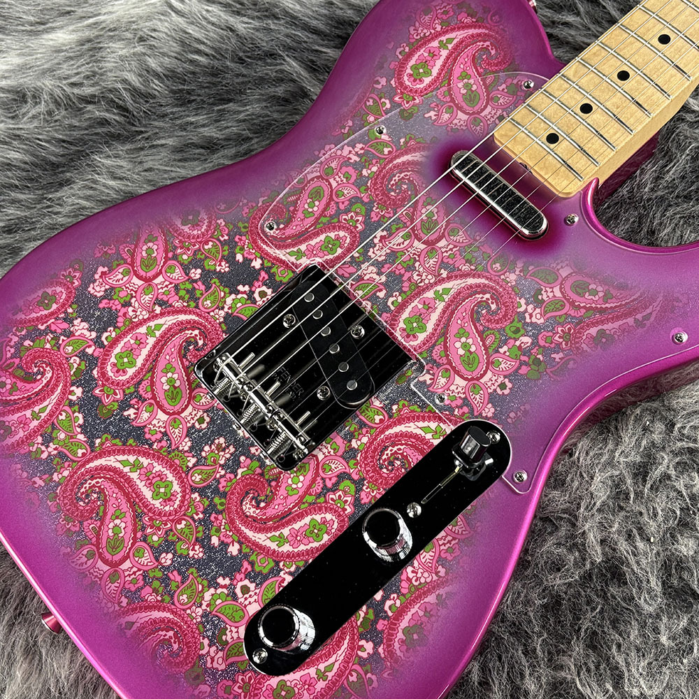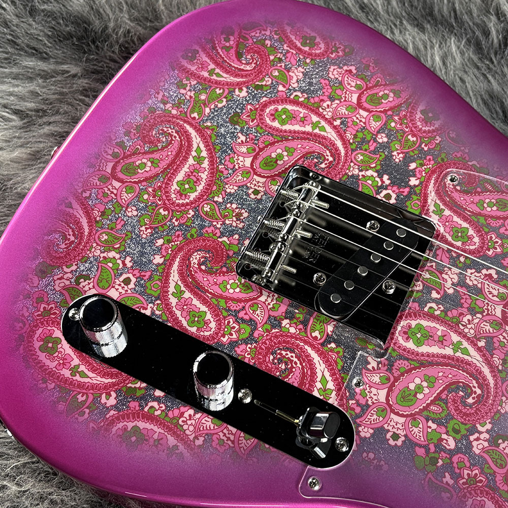 Made in Japan Limited Telecaster Paisleyは、ペイズリー柄のシートを貼り付けた、グロスフィニッシュのアルダーボディを採用。