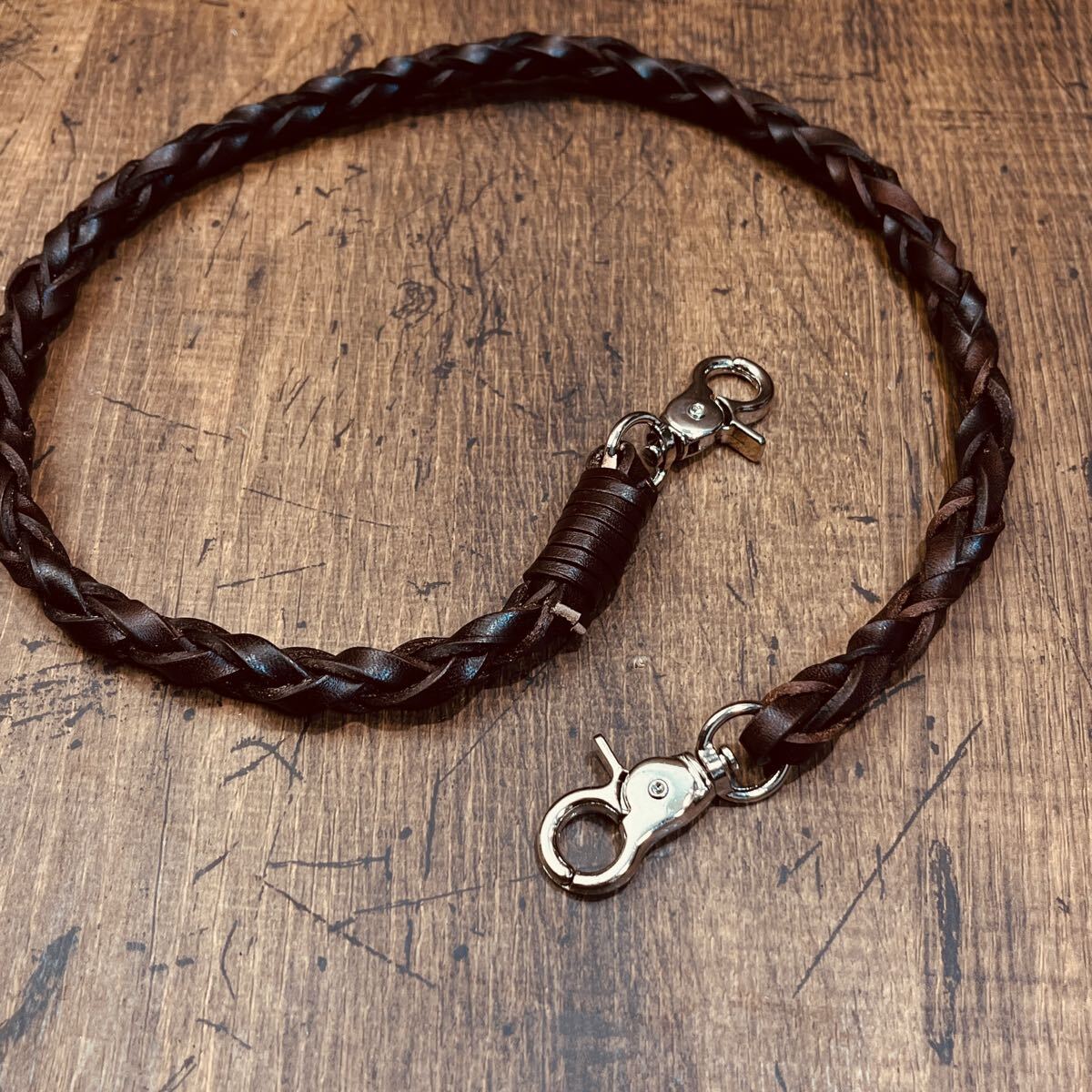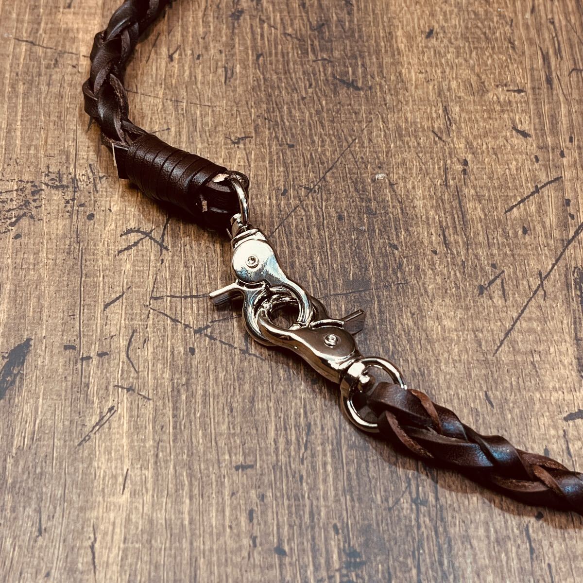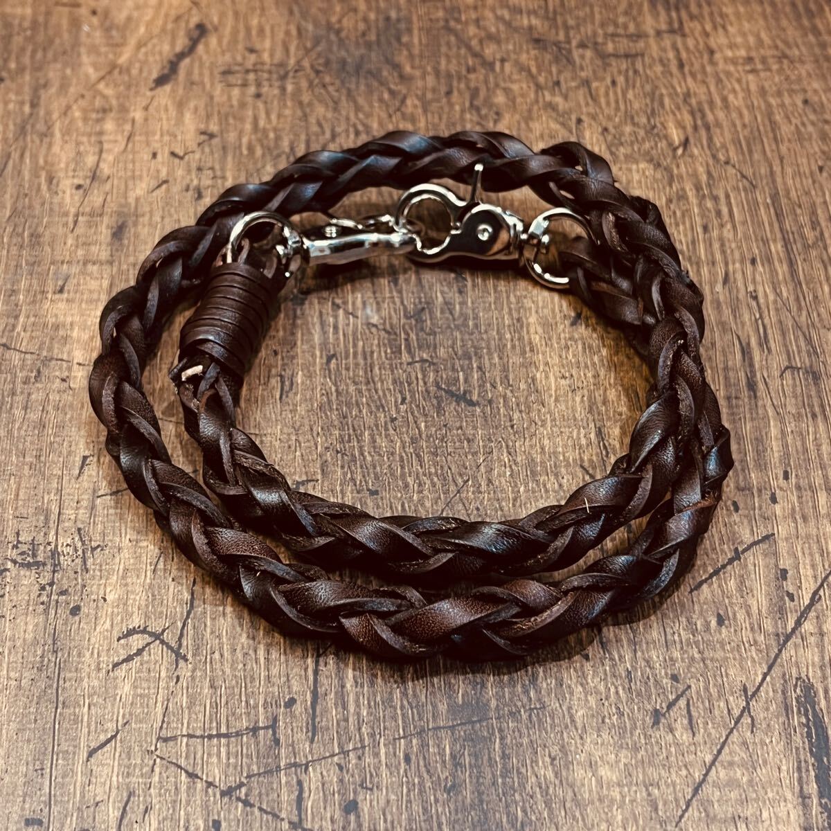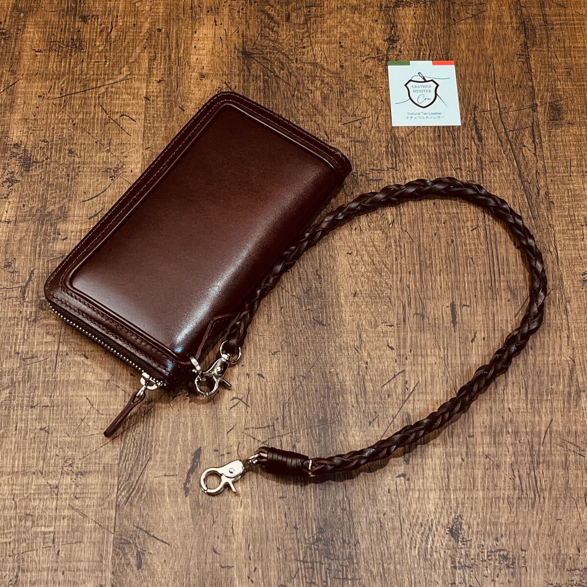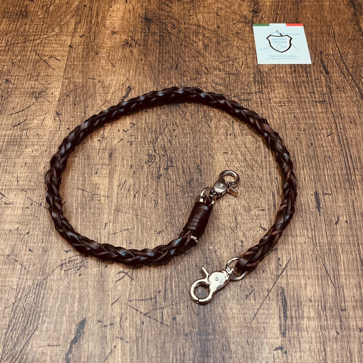 新品 ウォレットチェーン 本革 サドルレザー ウォレットロープ 手編み バイカー レザーウォレットロープ 長財布 メンズ