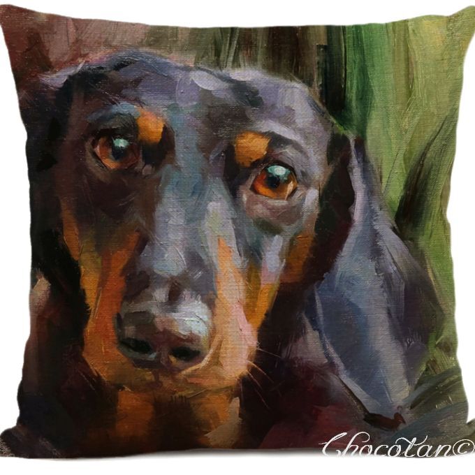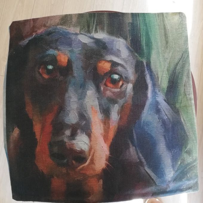 【送料無料】 ダックスフンド a46 コットンリネン 45x45cm クッションカバー【新品】