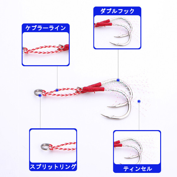 ジギングの必須アイテム【アシストフック(ダブル)】を10個セットで出品します。