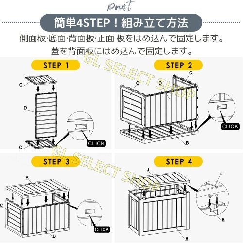 • 【簡単4STEP!組み立て方法】側面板底面背面板正面 板をはめ込んで固定します。蓋を背面板にはめ込んで固定します。