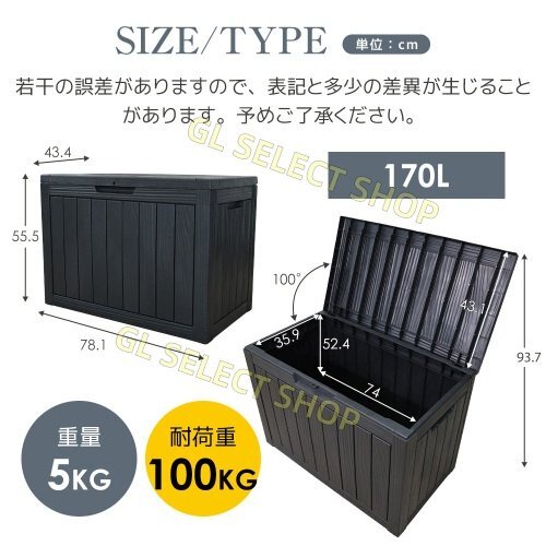 【ブラック 170L 78.1*43.4*55.5cm】戸外収納庫 収納ボックス 置き配 ゴミ箱 小型 屋外 ストッカー 防水/耐侯 収納可能 頑丈