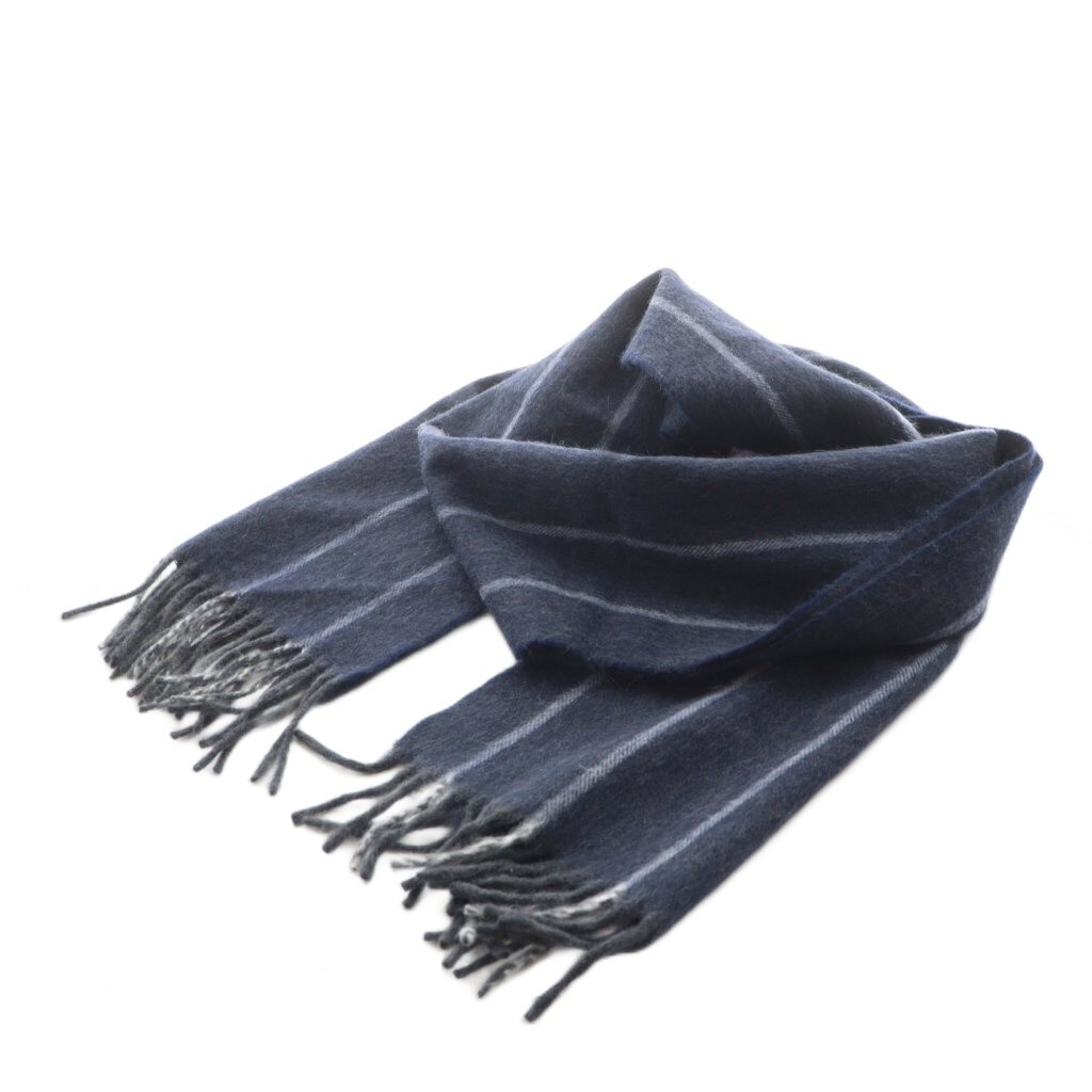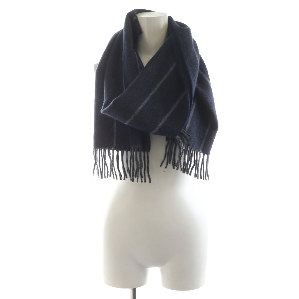 ドレイクス DRAKE'S マフラー フリンジ ストライプ柄 ウール アンゴラ混 紺 ネイビー /AN6 レディース