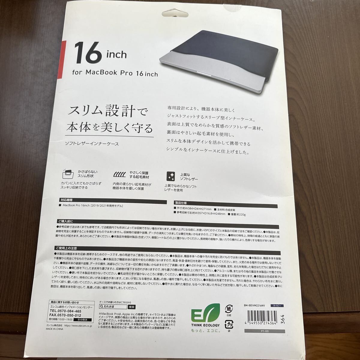 エレコム パソコンケース PCケース MacBook Pro 16.2インチ(2023/2021/2019年発売モデル)対応 ソフトレザー スリーブケース スリム ネイビー BM-IBSVM2216NV