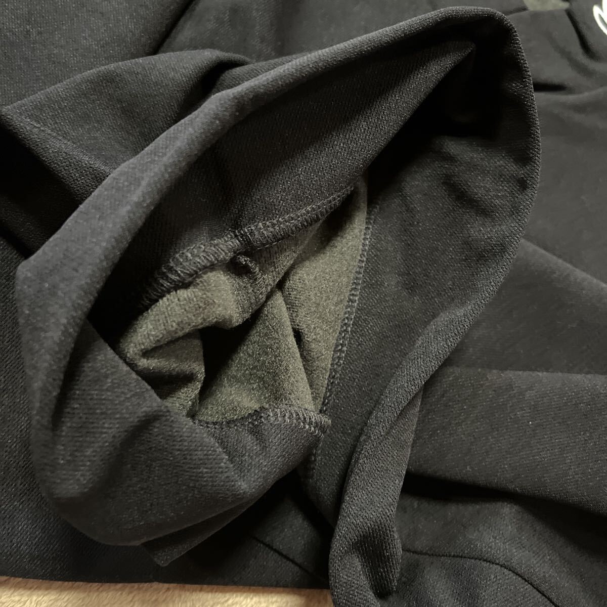 表面はツルっとしたジャージのような素材で、裏地は微起毛気味で暖かいウエアとなります。