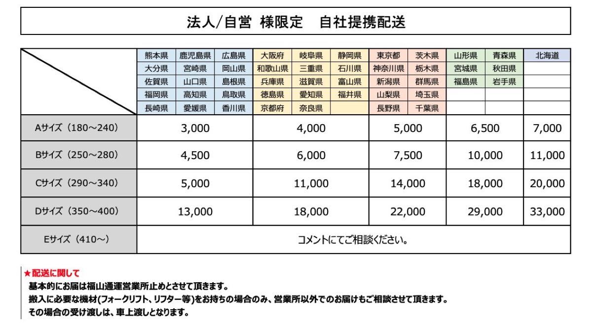 ※基本的に「車上渡し」でのお届けです。荷降ろしはお客様にてご対応ください。フォークリフトや人員のご準備をお願いいたします。