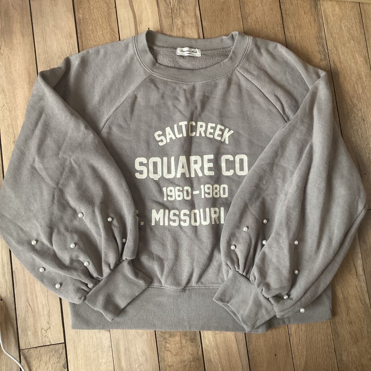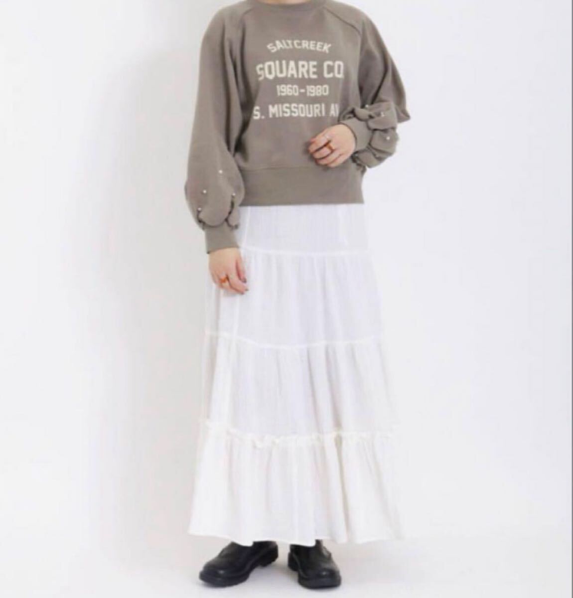 散りばめられたパールビーズが上品なアクセントをプラスするスウェット