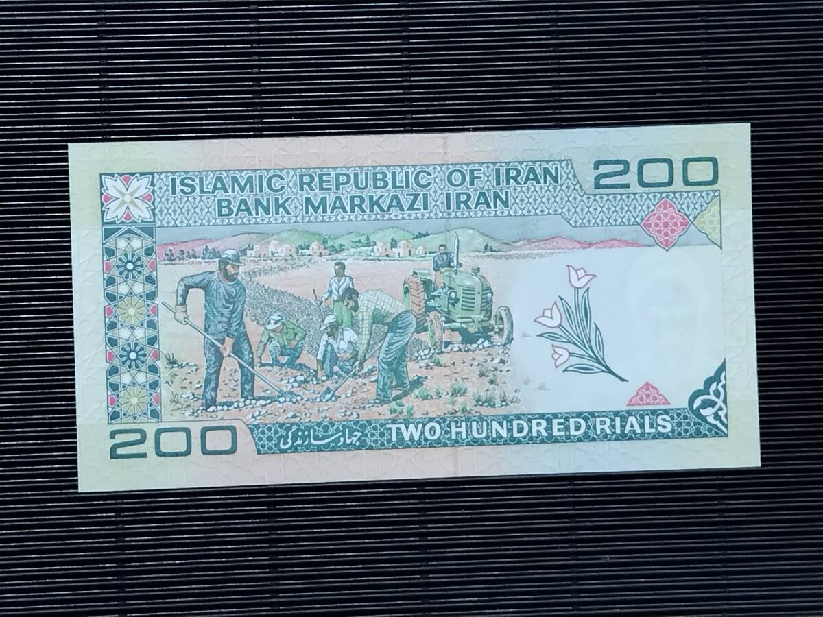 イラン 200 Rials札  コレクション向けピン札  ND(1982-2005年)  未使用~甘い未使用    トラクター p-136e  #85/15 722496