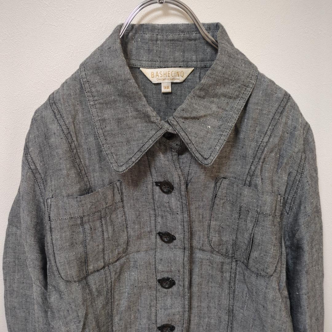 BASHECINO(9R)リネンジャケット*長袖*レギュラーカラー*ミドル丈*麻