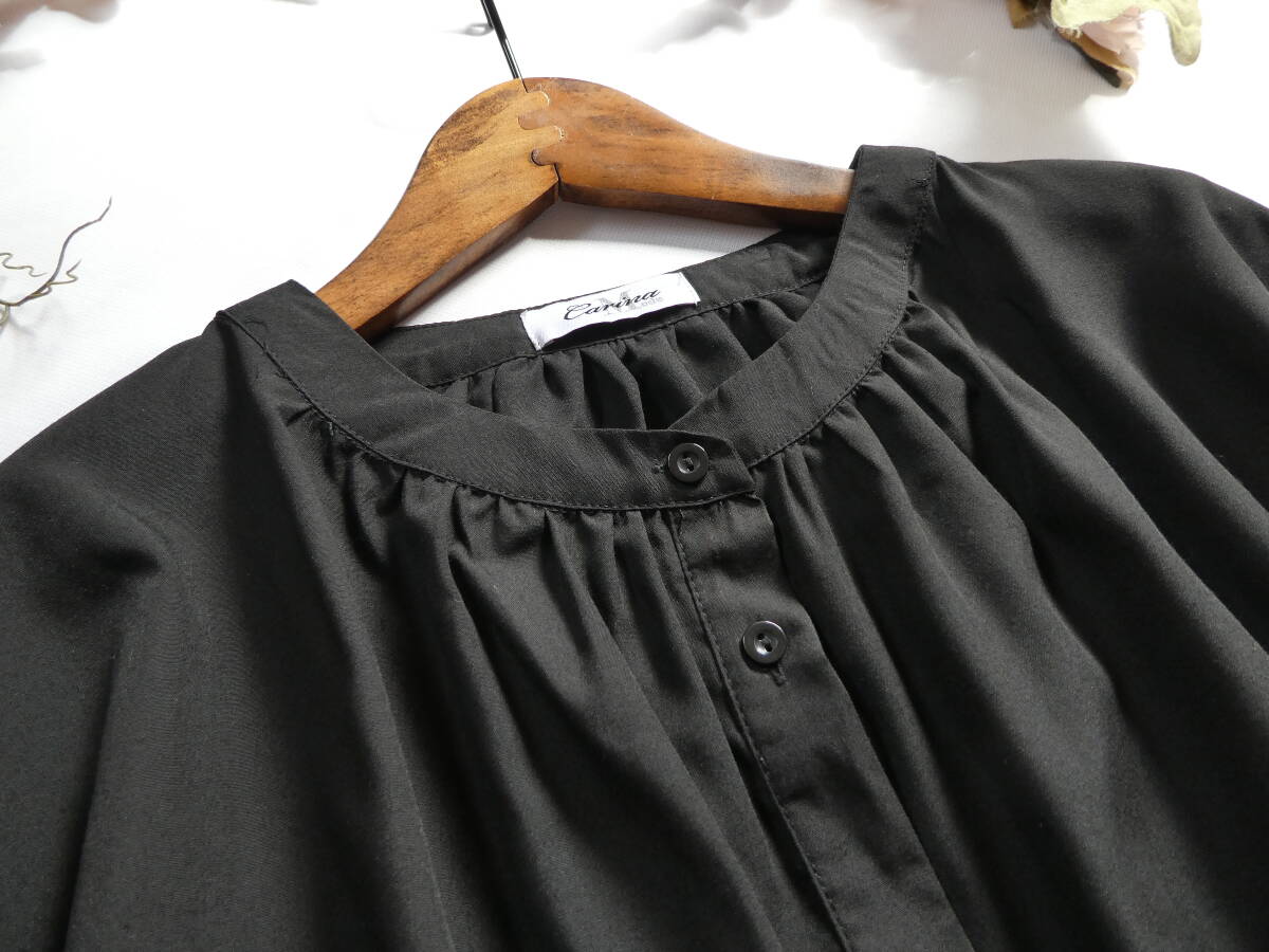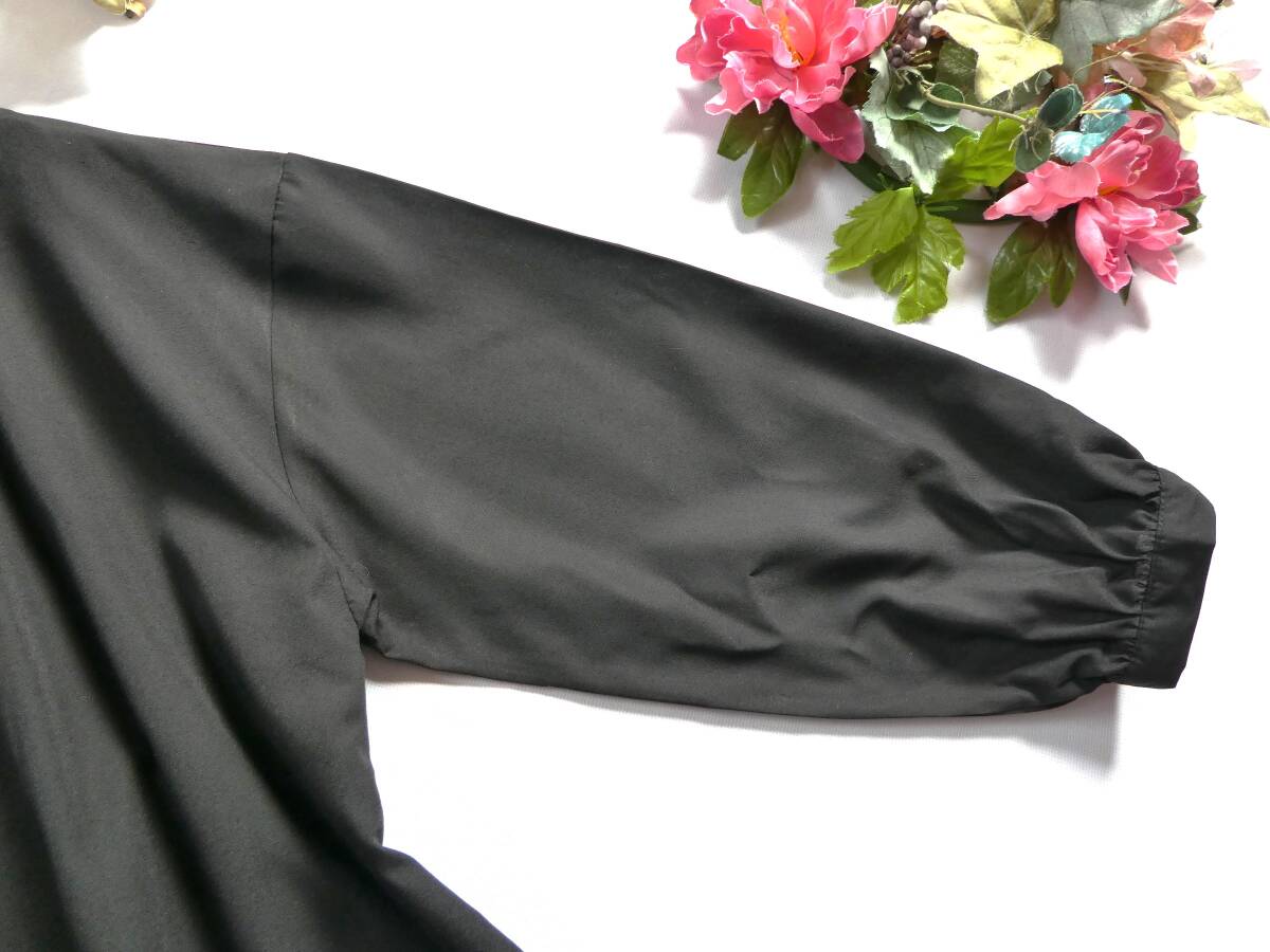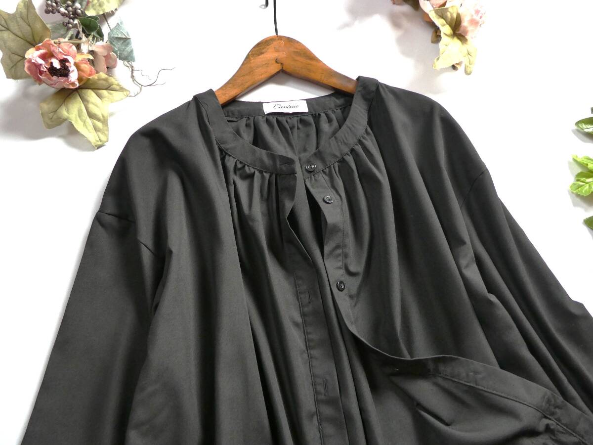 ゆったりサイズ【新品】ナチュラルでフェミニン♪ヨークカラーでふんわり☆裾レースシャツチュニック◇羽織り物・黒◆fit1027◆