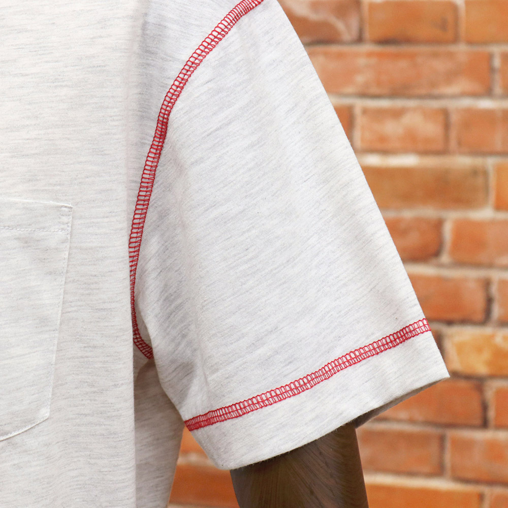 杢調の風合いが魅力のフライス生地を採用した半袖Tシャツ。さらりとなめらかな肌触りで心地よく着用いただけます。メランジカラーのボディに配色ステッチでアクセントを効かせた、シンプルながらも品のあるルックスが魅力。クルーネック仕様で首元もすっきりと見せてくれます。