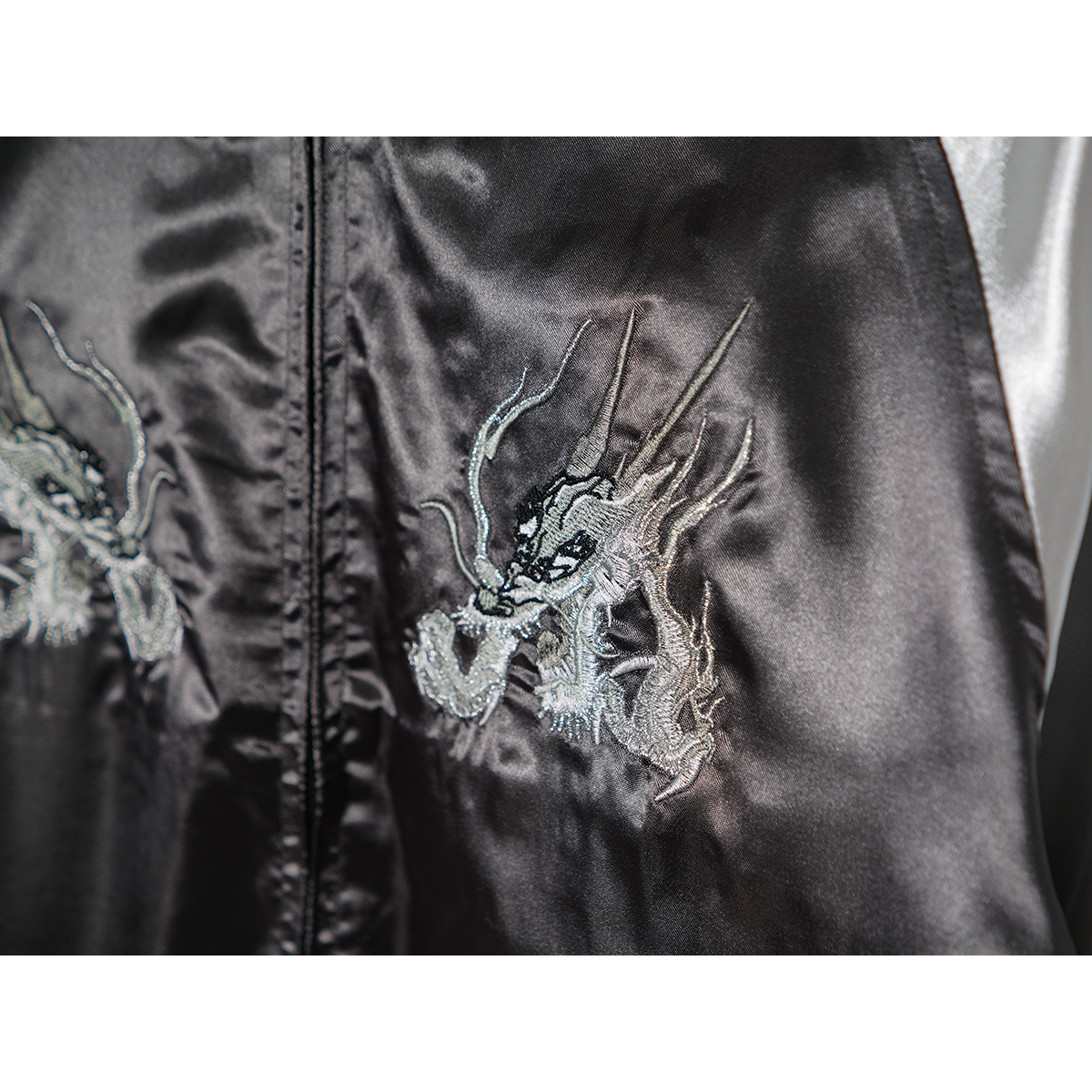| さらりと羽織れるストリート定番スカジャン。 程よい厚さとサラッとした高級感のあるサテン生地、 フロントとバックに施された丁寧な刺繍使いがポイントで、アメカジでは定番のスカジャンを現代っぽくタイトなサイズ感に。 ボディはカラー配色切り替えで仕上げた大人っぽさのあるデザインなど凝ったディティール。 これからの時期に最適、ライトアウターとして活躍してくれる1着。 左胸内側裏ポケットあり、中綿ナシ。 【カラー◆Color】 銀龍 / Gray 【サイズ◆Size】 5L(4XL) 【寸法◆Size】 3L size : 身幅61cm 肩幅(ラグランにより数値なし) 着丈69cm 裄丈89cm (2XL,XXL) 4L size : 身幅63cm 肩幅(ラグランにより数値なし) 着丈71cm 裄丈91cm (3XL) 5L size : 身幅65cm 肩幅(ラグランにより数値なし) 着丈73cm 裄丈93cm (4XL) 【素材◆Material】 ポリエステル 100% ※現物に近いカラーに撮影しておりますがモニターカラー設定、または印象によりカラー誤差があることをご理解よろしくお願い致します。 | ||