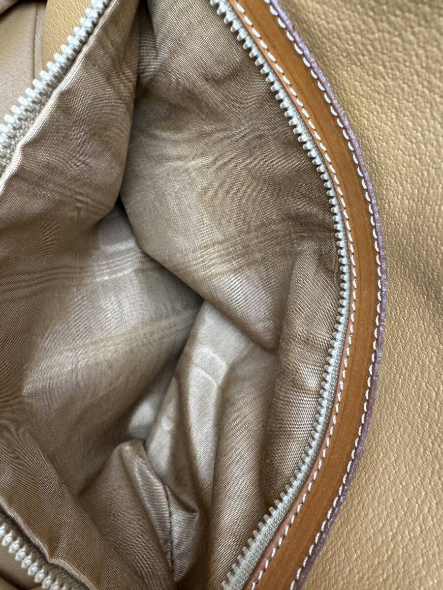 落ち着いたブラウン系のPVCキャンバスにレザーのトリミングを施した、高級感と実用性を兼ね備えた逸品。外側には便利なオープンポケット付きで、書類や小物の収納にも最適です。肩掛け可能なレザーハンドルで、通勤・通学からデイリーユースまで幅広く活躍します。