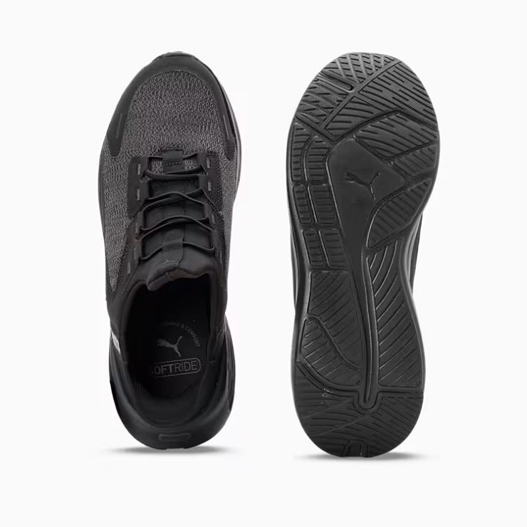 プーマの「イーズイン(EASEIN)」は、スポーティなデザインと高い機能性を兼ね備えたランニングシューズ。SOFTRIDE シンメトリーをベースに、立ったままでも簡単に履けるスリッポン構造を採用し、忙しい日常でもストレスフリーな着脱を実現します。ミッドソールには、優れたクッション性を誇るPUMA SOFTRIDE FOAMを搭載。厚めのソール設計が足への衝撃をしっかり吸収し、長時間のランニングやウォーキングでも快適な履き心地が持続します。アッパーには、軽量で通気性に優れたヘザールックのメッシュ素材を使用。柔らかく足にフィットし、軽やかなステップをサポートします。エラスティックシューレース仕様で、見た目はスポーティに、履き心地はイージーに。プーマキャットロゴがアクセントとなり、スタイリッシュな印象を演出します。 |