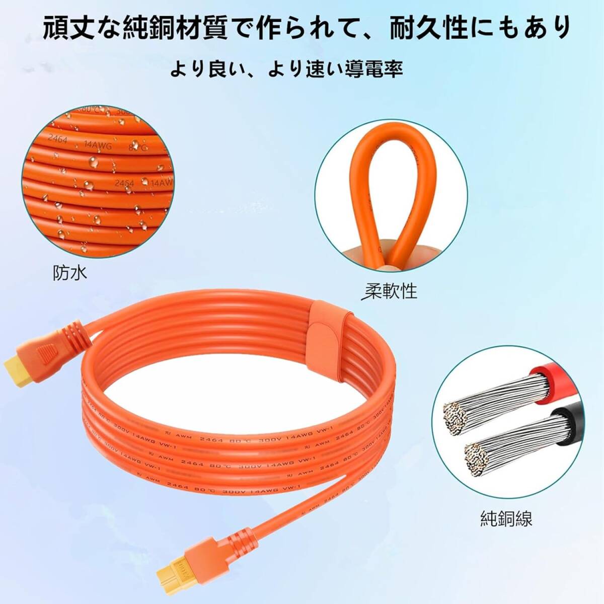 • 【仕様】規格:14AWG銅線、長さ:2M、電圧: 300V、温度範囲:-40℃ ~ +80℃。防水レベルはIP67に達します。水や粉塵などがソーラー充電ケーブル内部に侵入しないことを確保できます