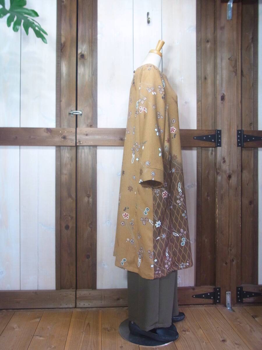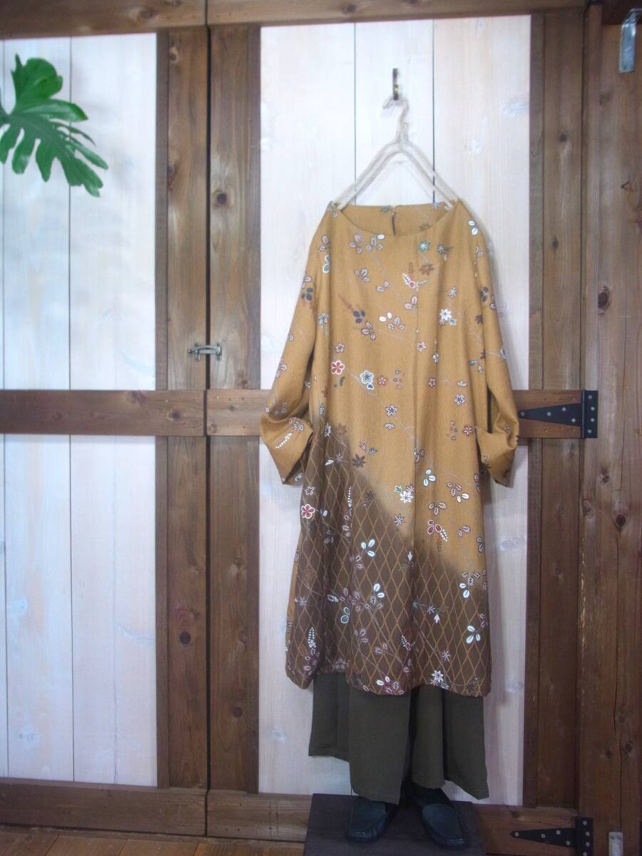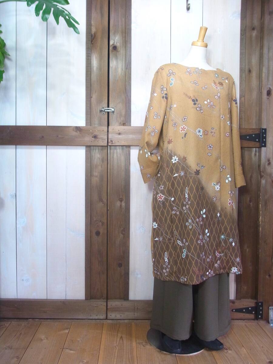 古布鎌倉山アロハ*着物リメイク::正絹訪問着×無地・小花文様×梅幸茶色:秋色^^チュニックワンピース&ワイドパンツのセット**ハンドメイド | ||||