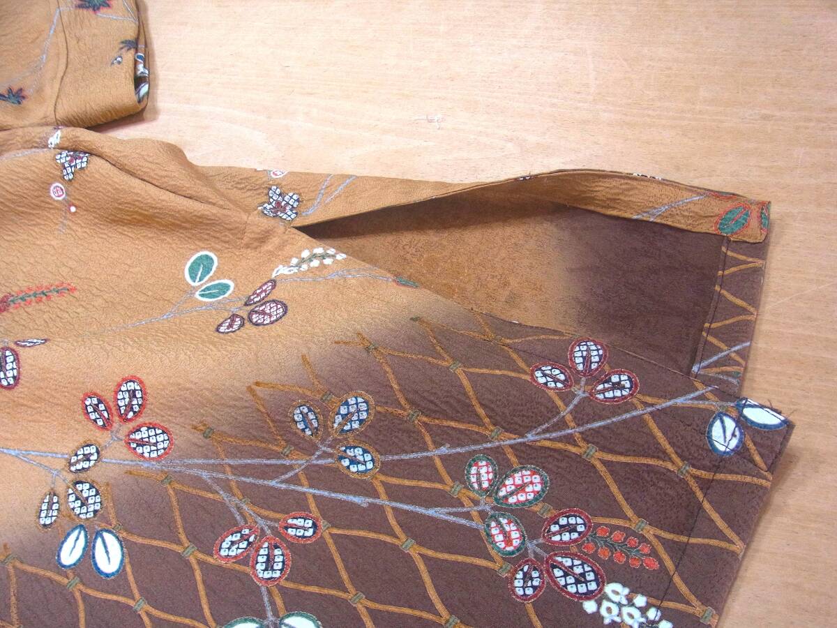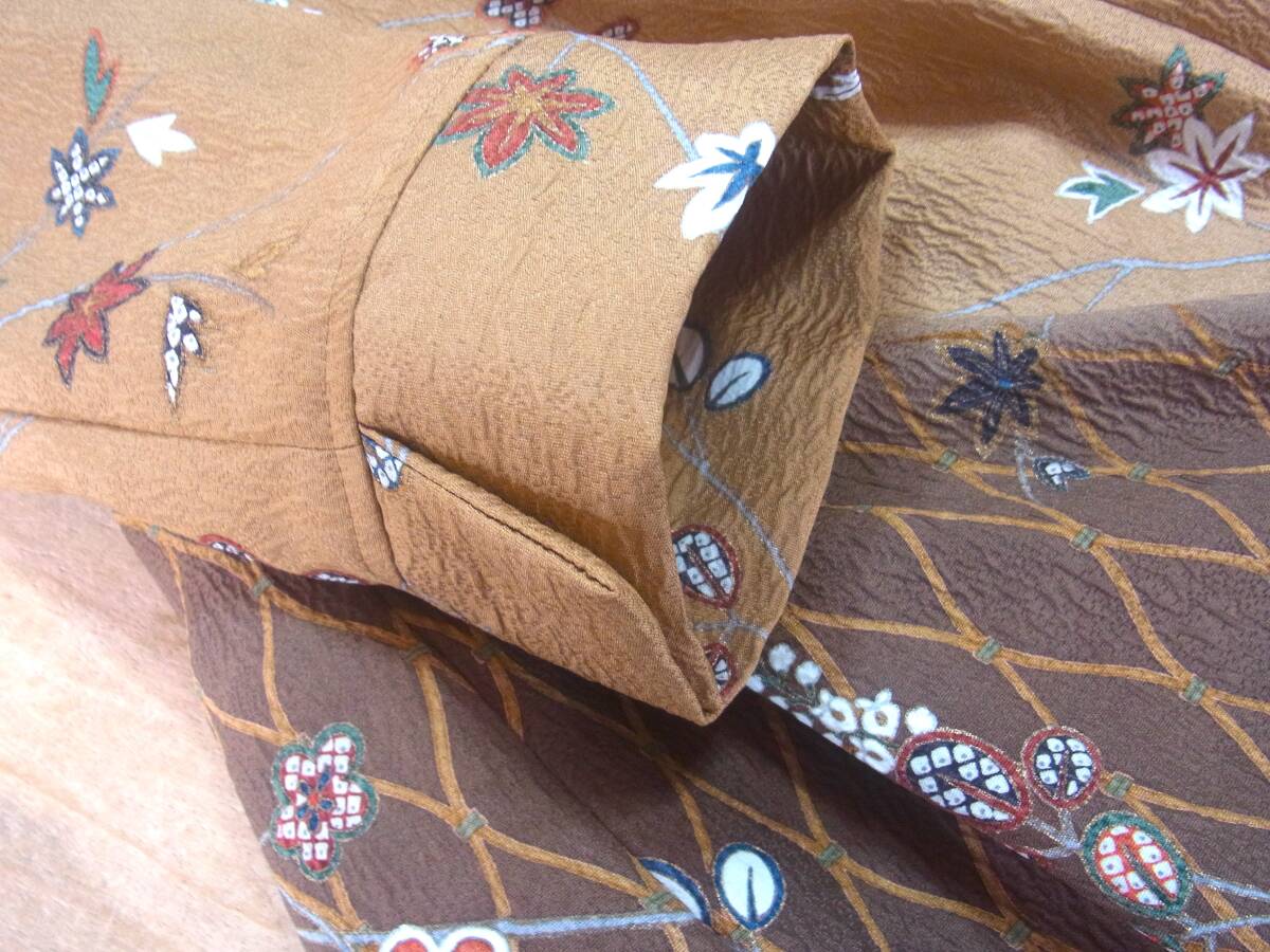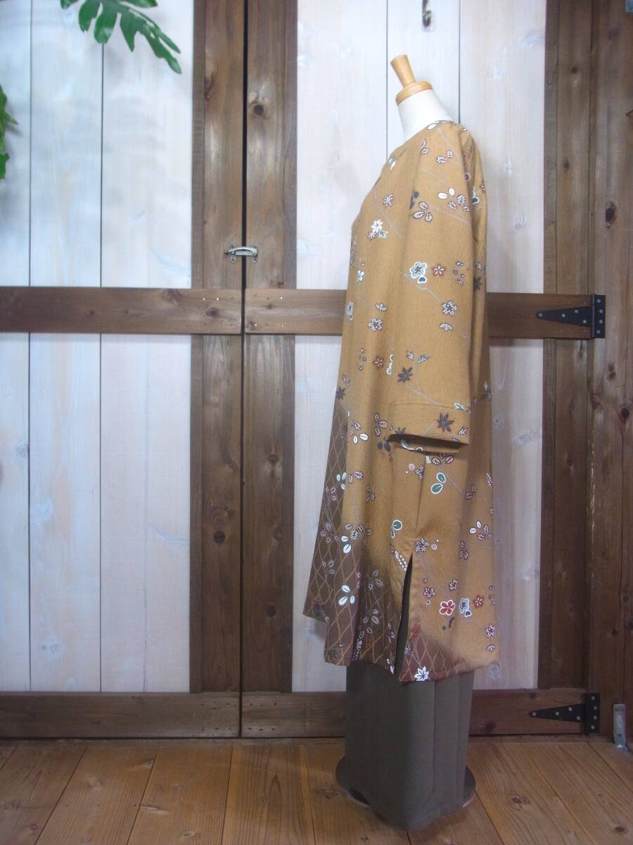 古布鎌倉山アロハ*着物リメイク::正絹訪問着×無地・小花文様×梅幸茶色:秋色^^チュニックワンピース&ワイドパンツのセット**ハンドメイド | ||||