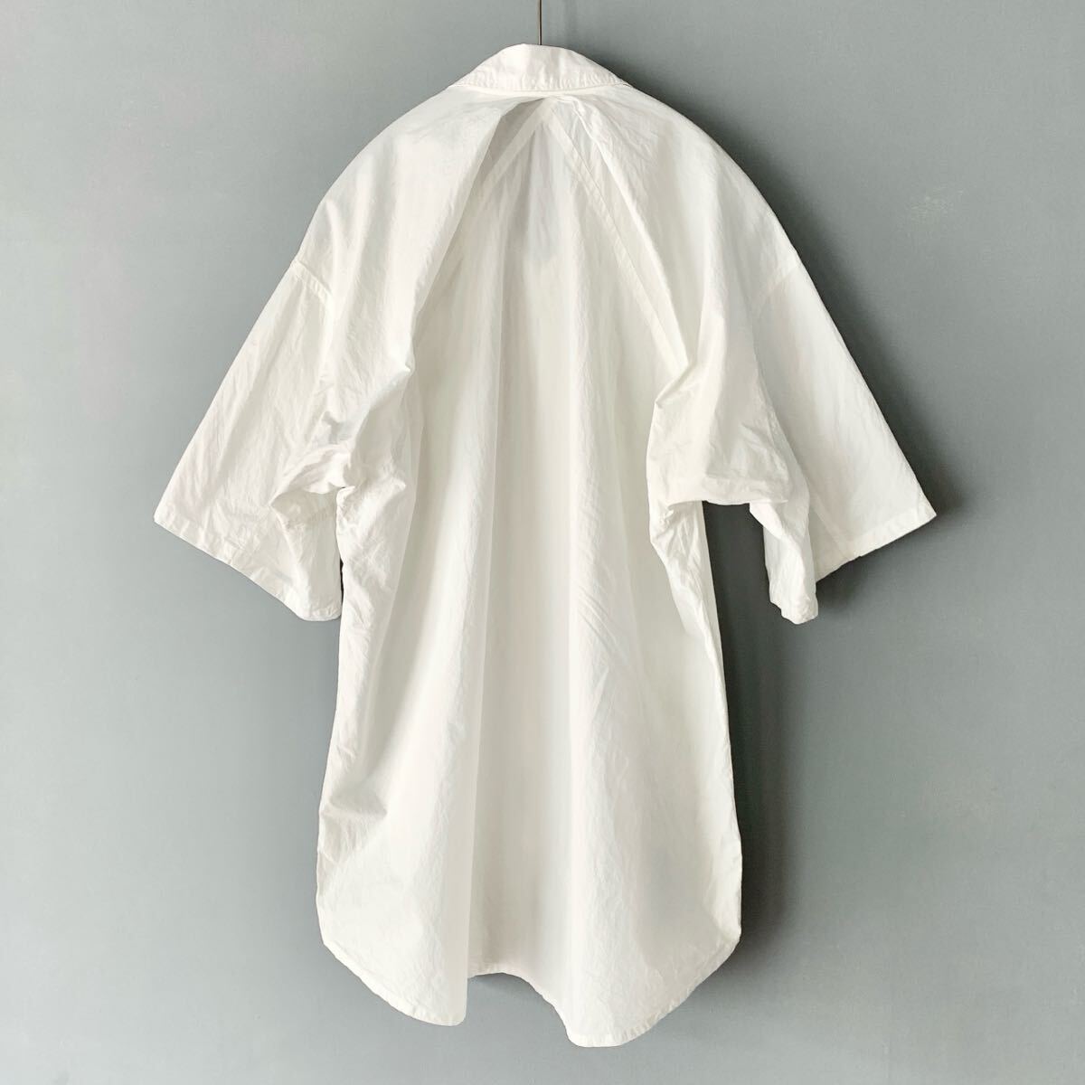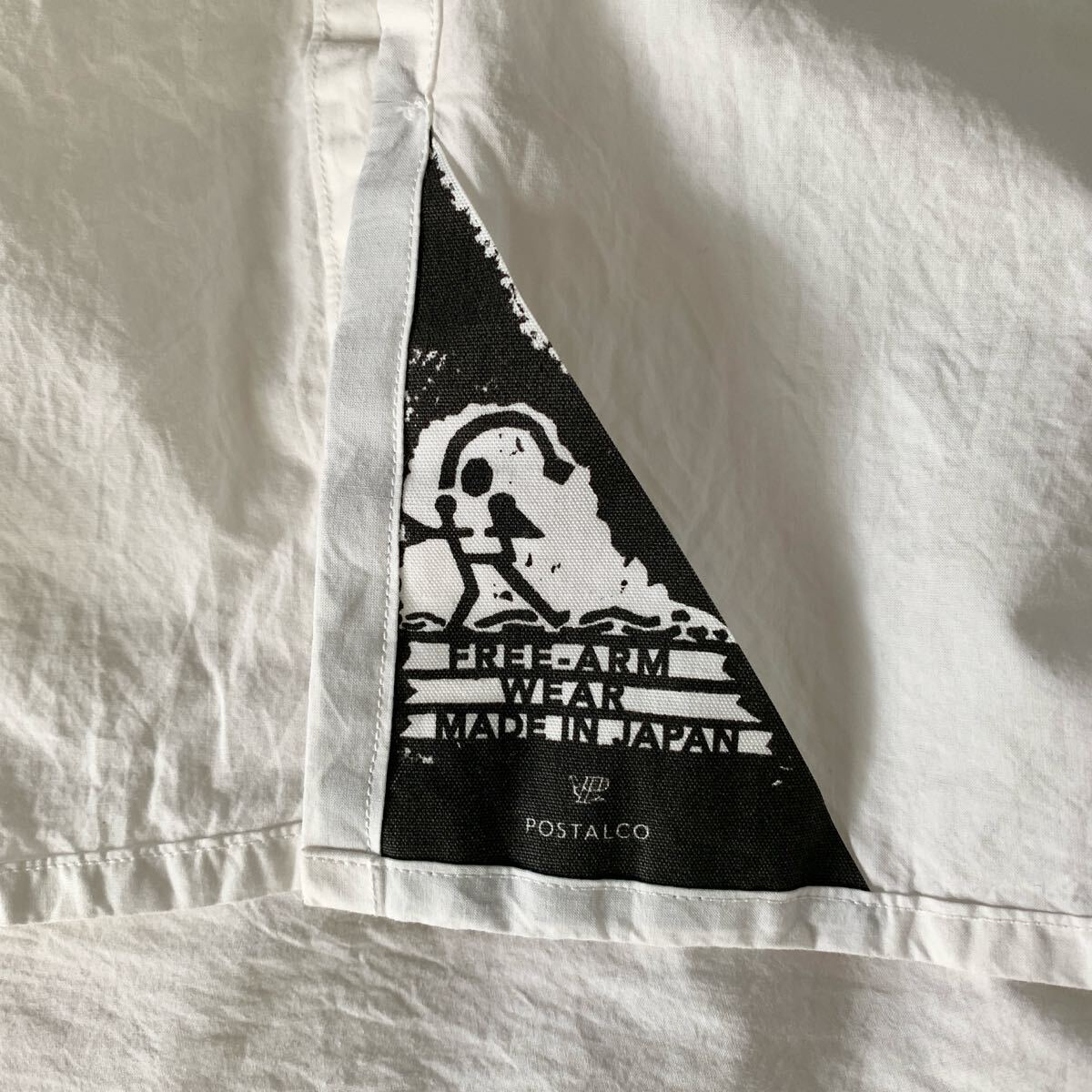 ポスタルコのフリーアームの半袖シャツです。腕の動きに極力制限がかからないように後ろ肩~袖にかけてオリジナルのパターンを採用しています。素材は中厚手のハリ感のあるキャンバスコットンです。