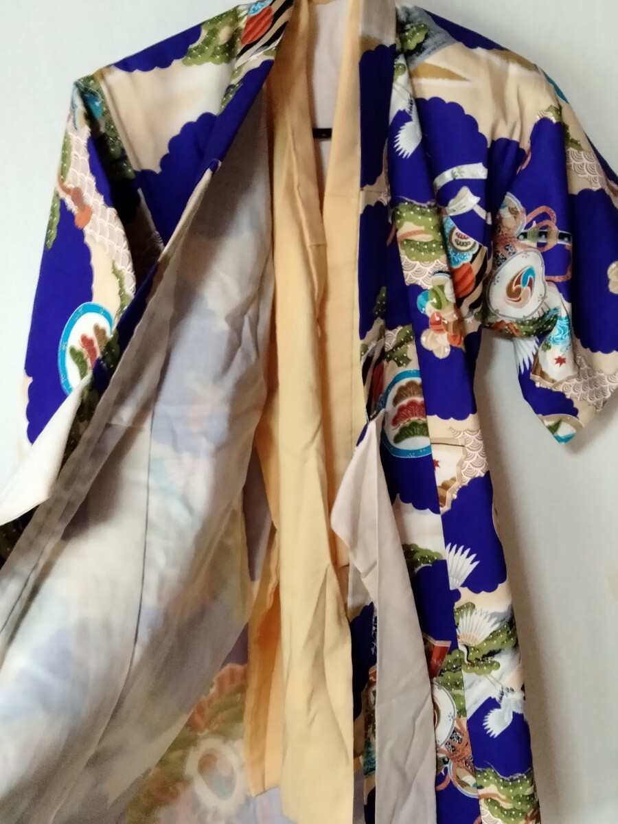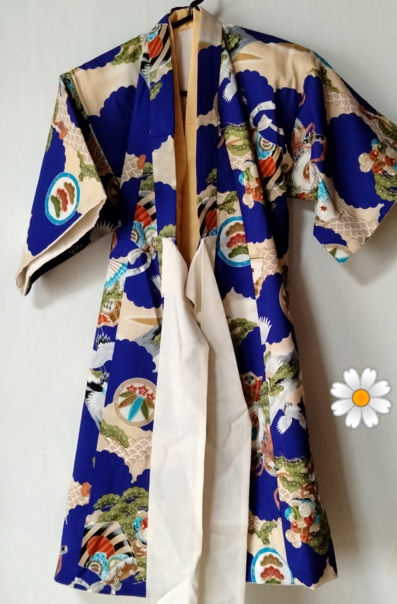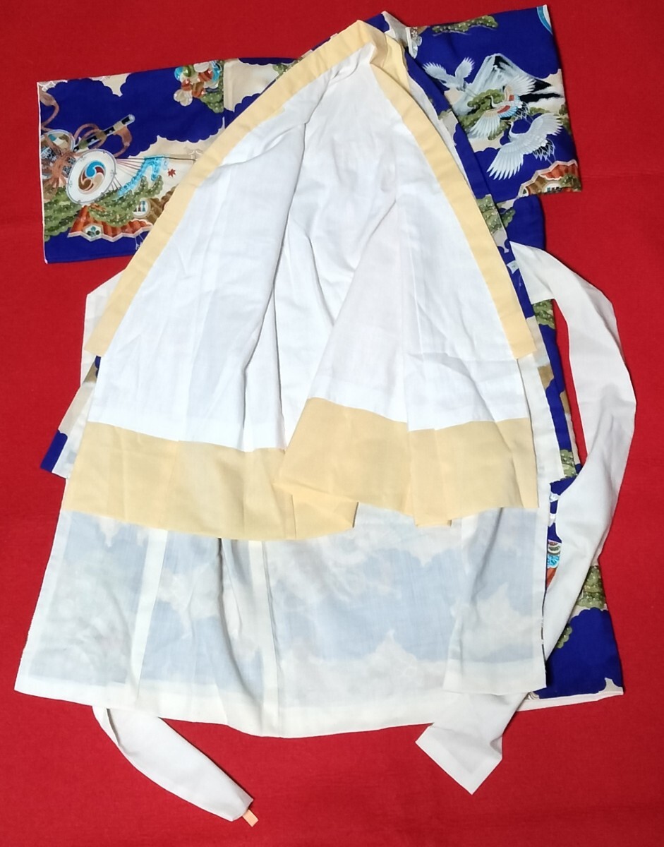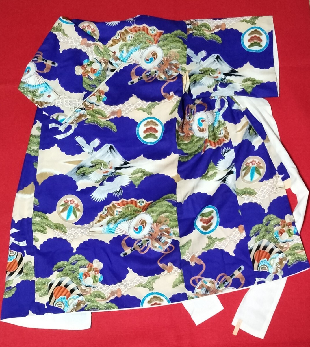 送料920円 男児着物 襦袢付き 男の子 子供 鶴 扇子 太鼓 松竹梅 和装