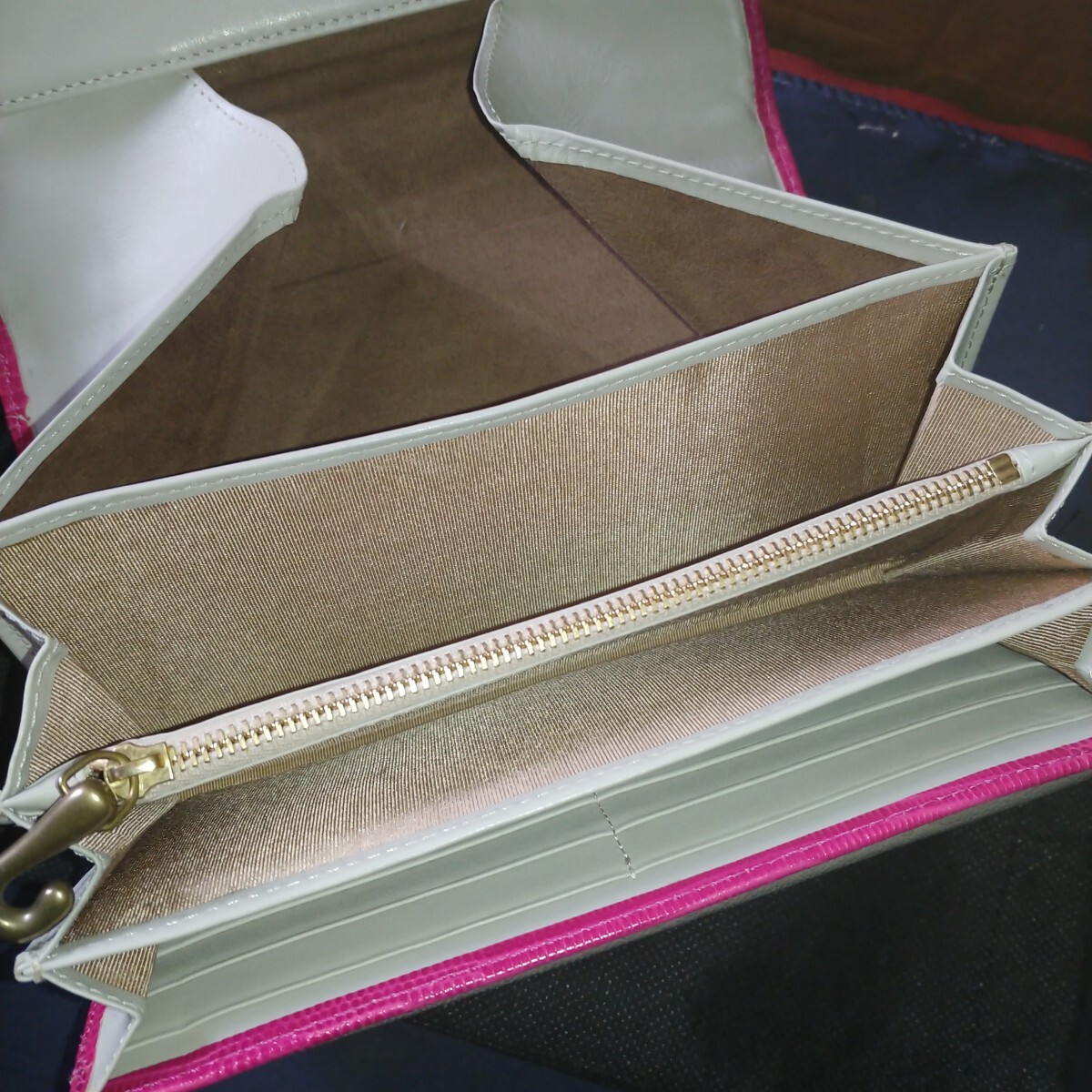 - 内部構造:カードが12、札入れが3、内小銭入れが1、内ファスナーが1、内ポケットが2、外ポケットが1