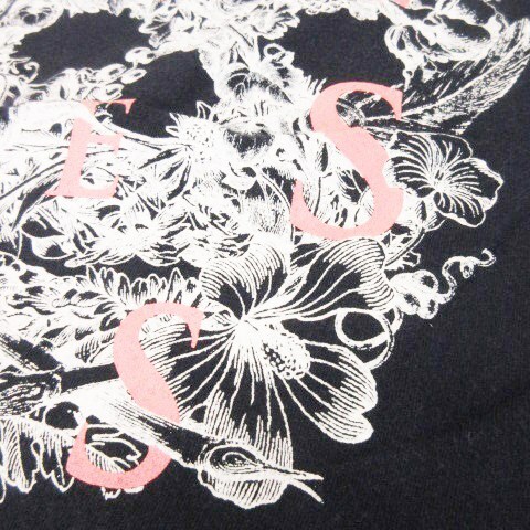 ラブレス LOVELESS 半袖Tシャツ ラウンドネック プリント スカル ハイビスカス ロゴ コットン 36 S 紺 ネイビー /AH6 レディース