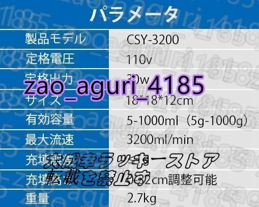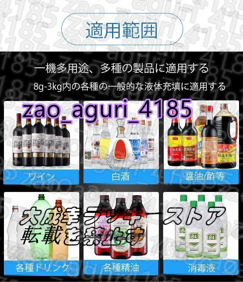 商品説明 商品説明 商品説明 パラメータ:寸法:18*18*12cm 重量:2.7kg 定格出力:30w 有効容量:5-1000g 充填速度:3200ml/min 充填誤差1g多種類の液体を充填する:高品質の隔膜ポンプを採用して、飲料、白酒、酢、醤油、ジュース、エッセンス、香水などの一般的な液体を充填する