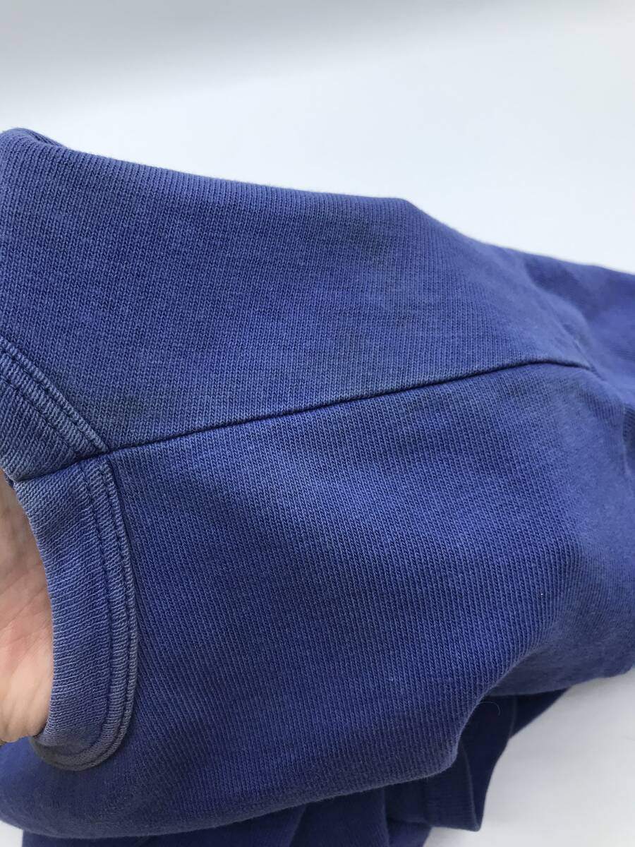 全体的に色褪せがあり、特に襟のリブの色褪せが目立ちますが、ビンテージ感あるロイヤルブルーの頑丈なボディと相まって、特別感のある一着に仕上がっていると思います。