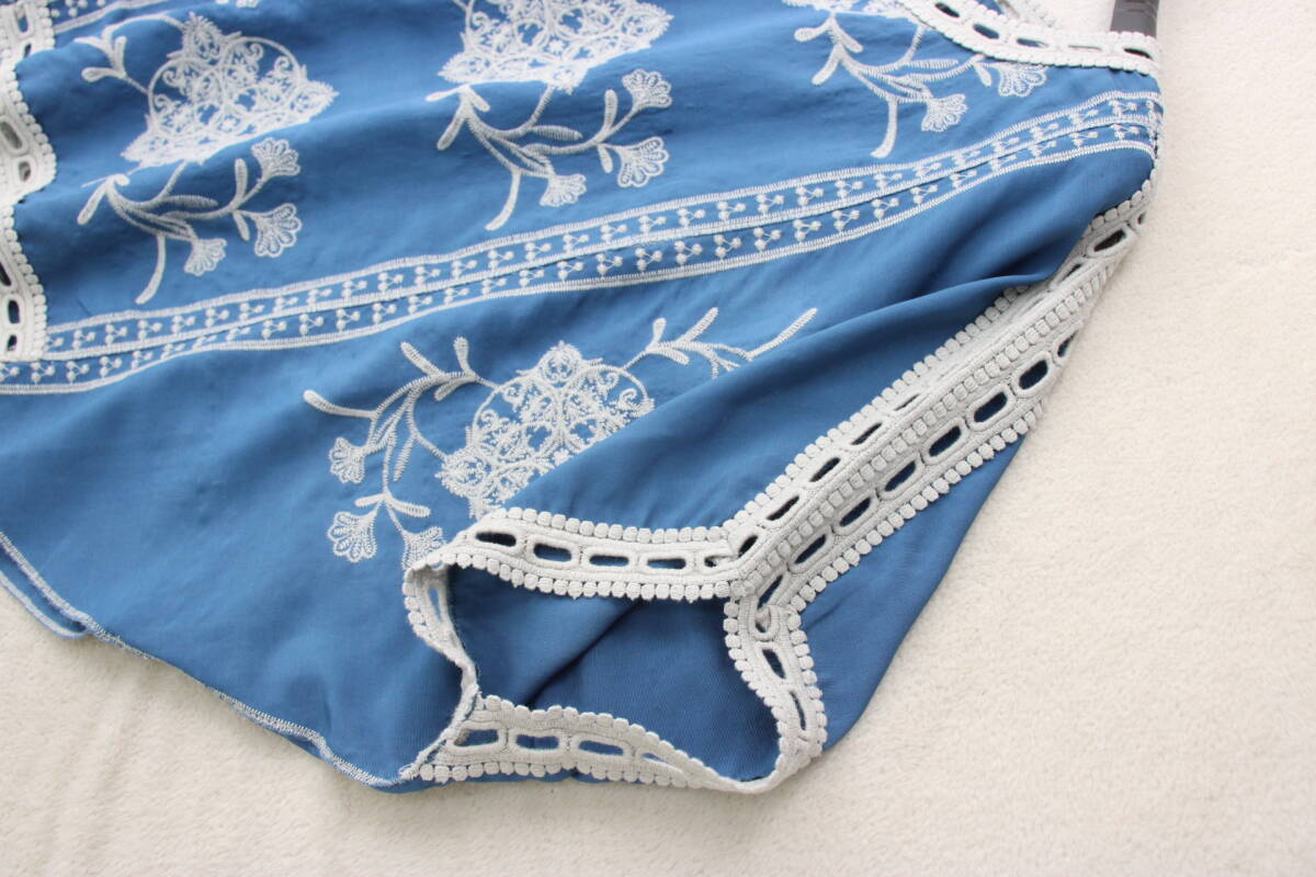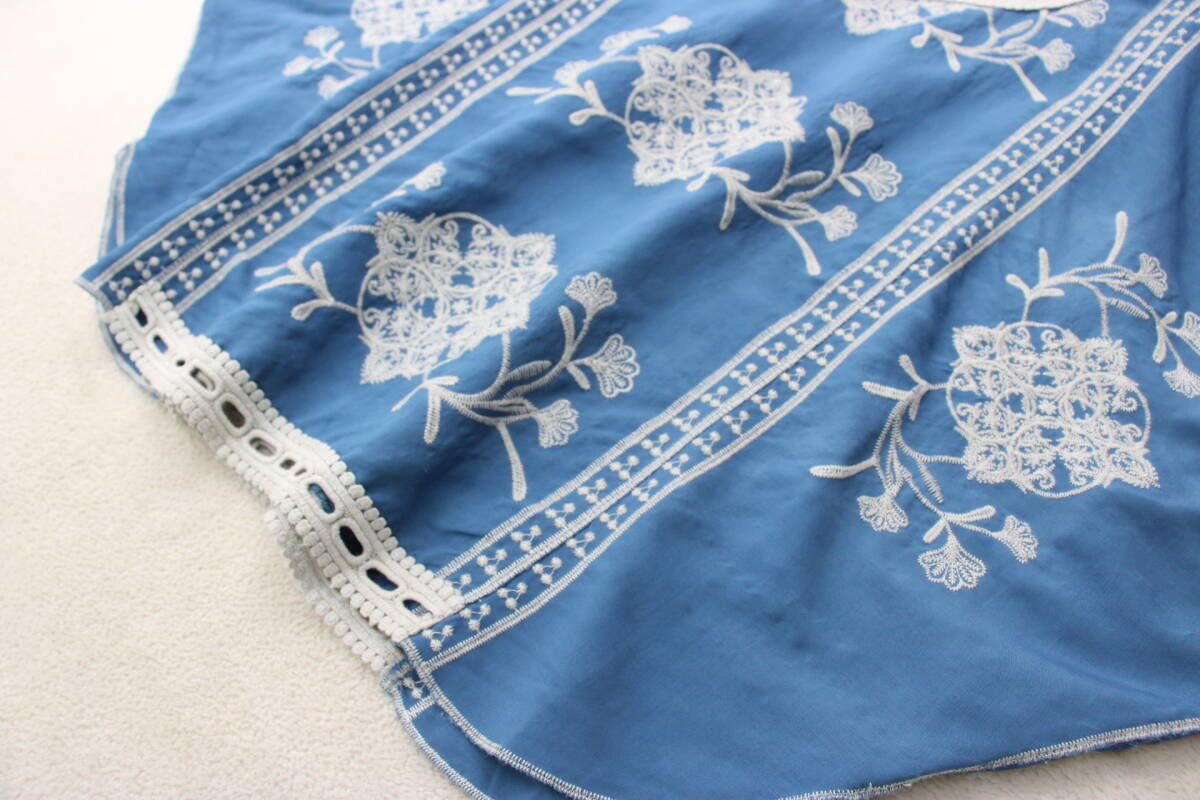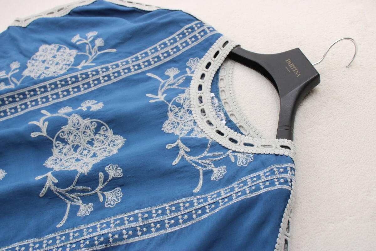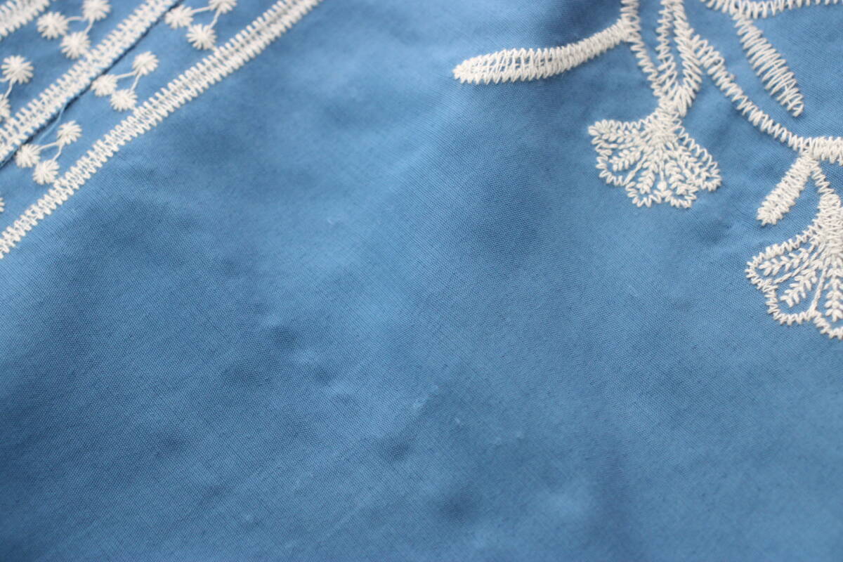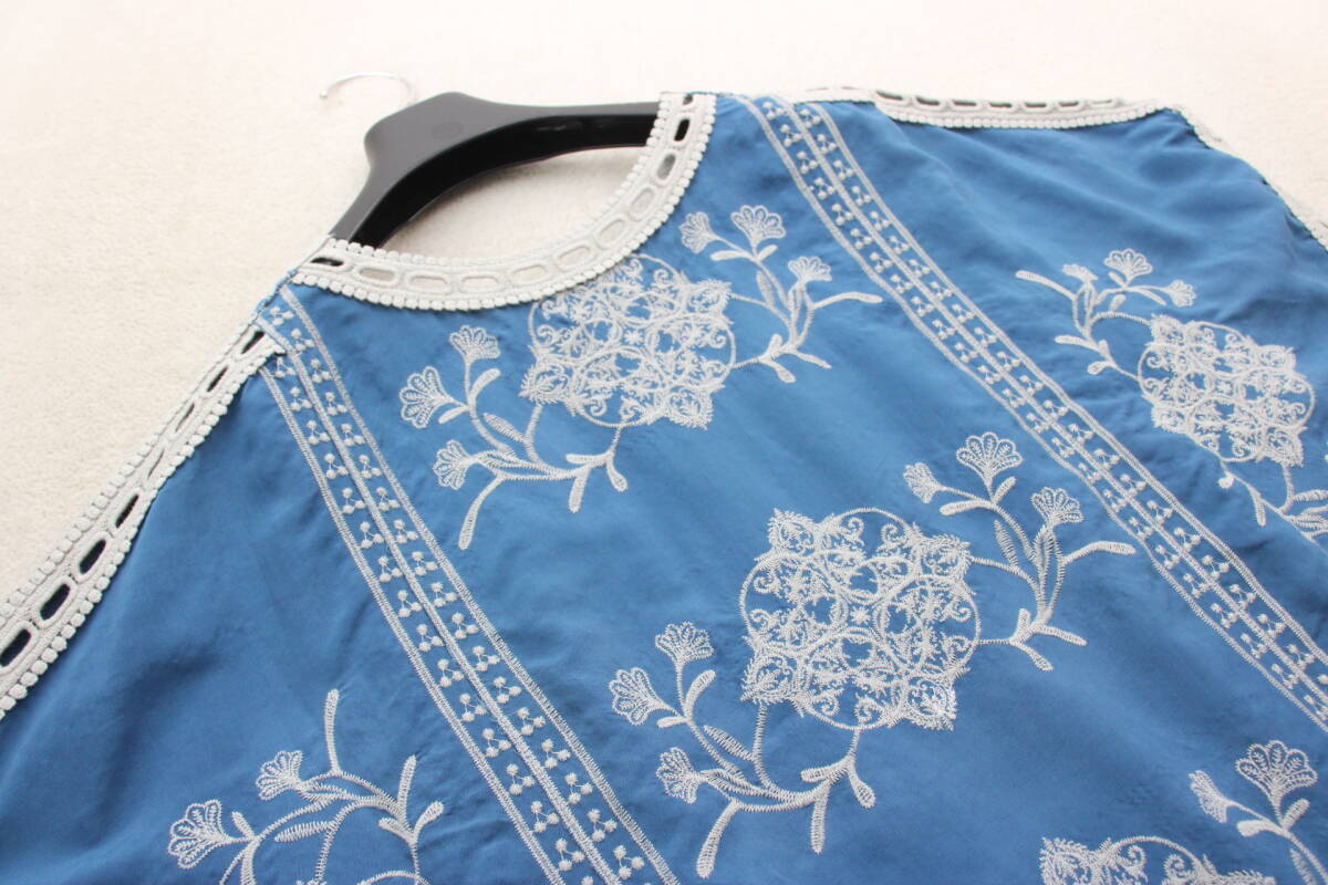4-482 新品 刺繍入りプルオーバー ブルーFサイズ