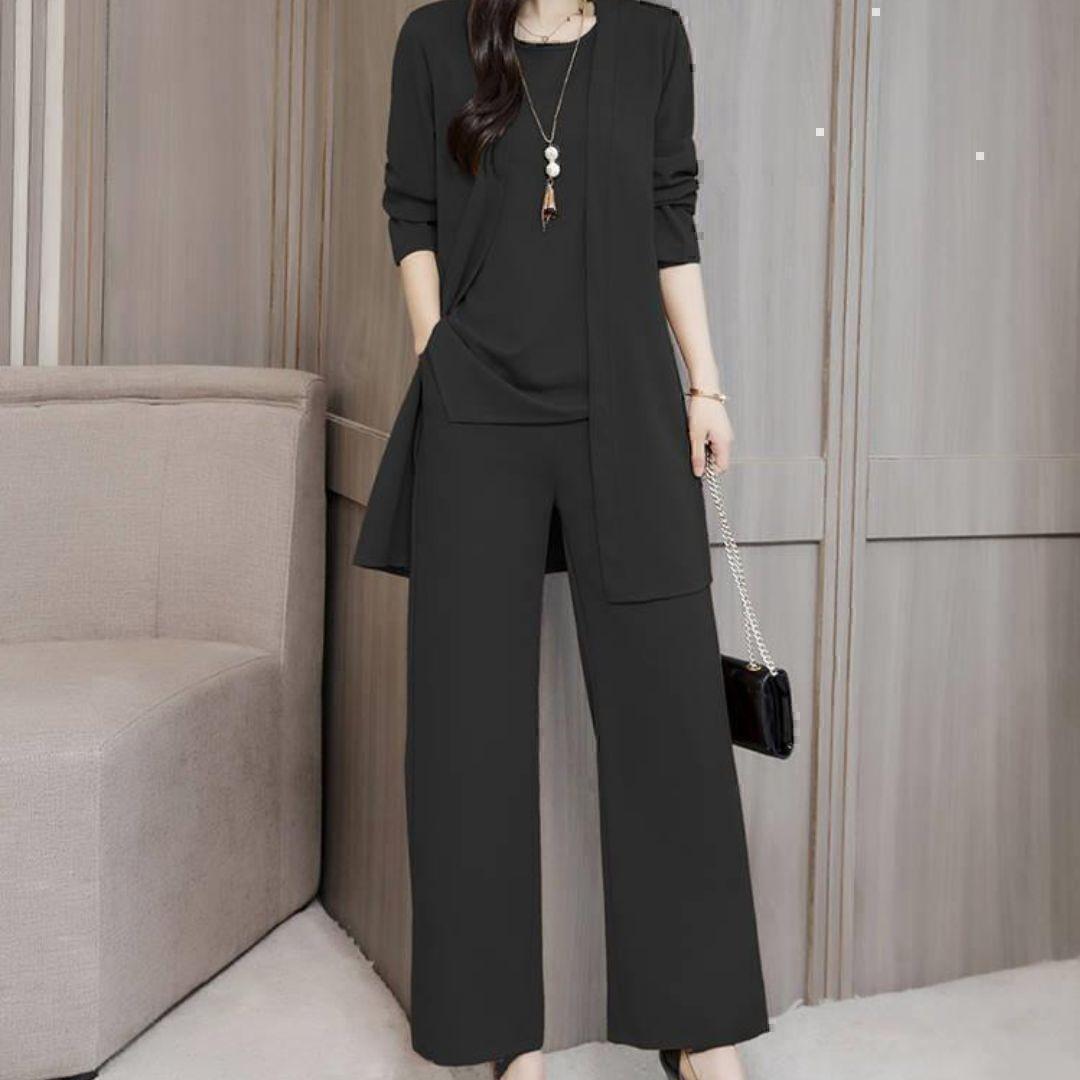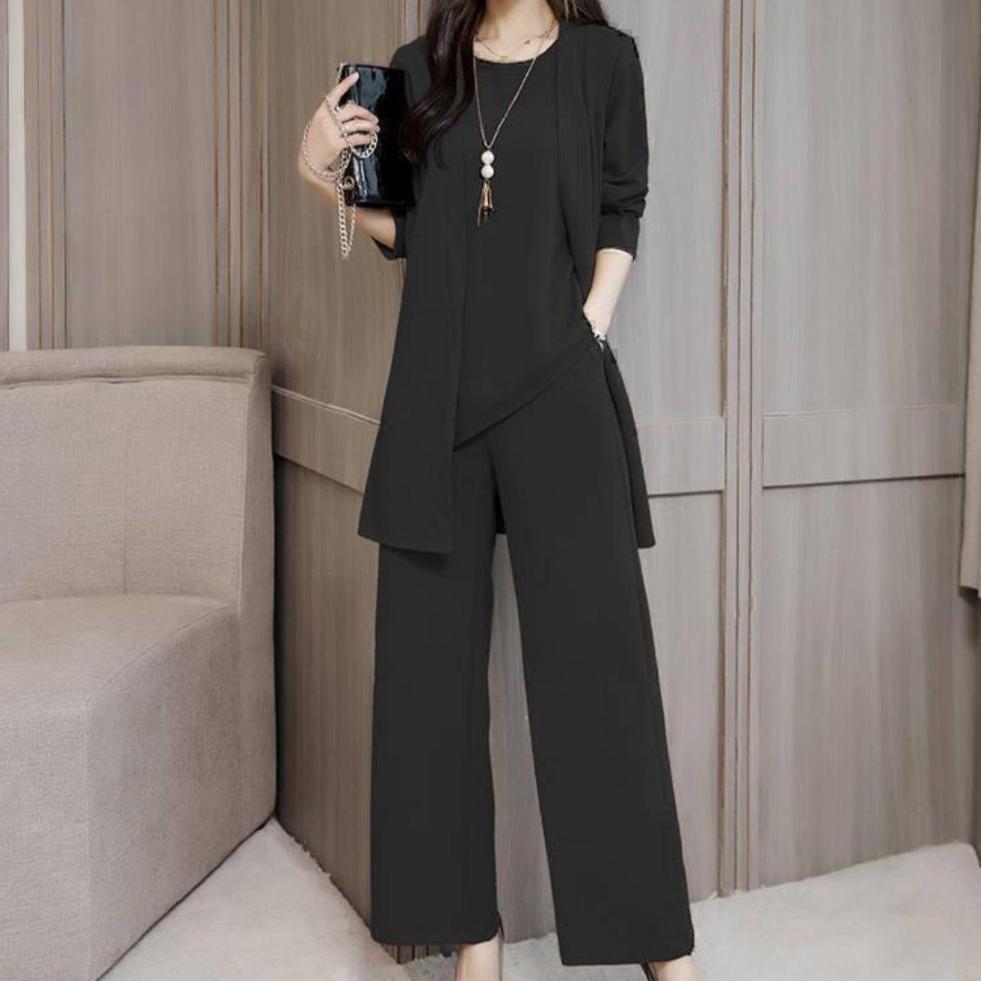 大人気!体型カバーデザインのパンツスーツ3点セットです