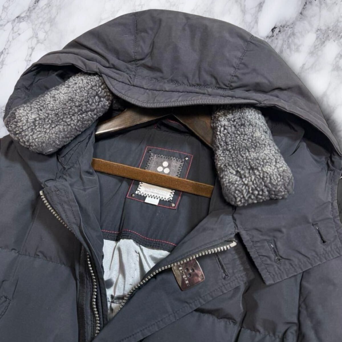 写真だと分かりにくいですが、フード、両肩〜袖付近にほんのわずかなやけがあります。