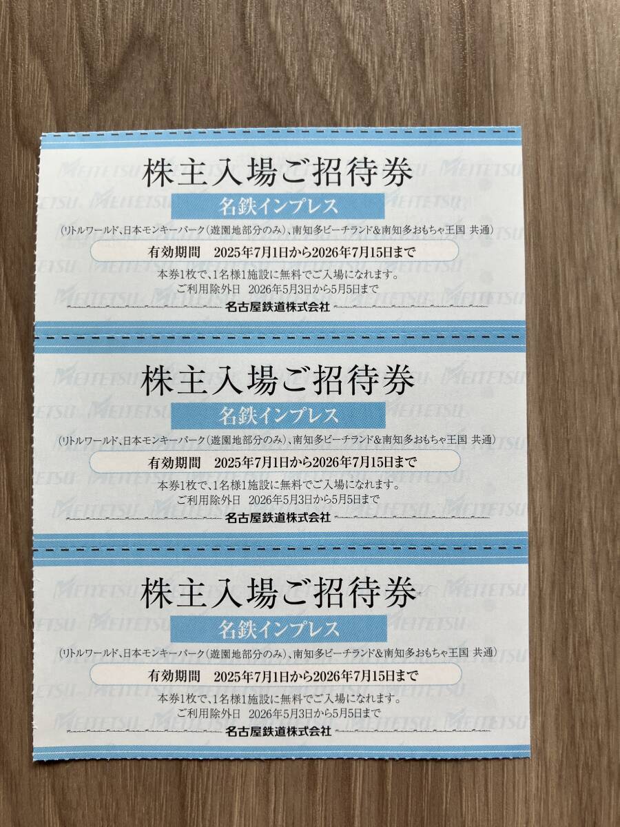 名古屋鉄道の株主優待 株主入場ご招待券 3枚セットです。
