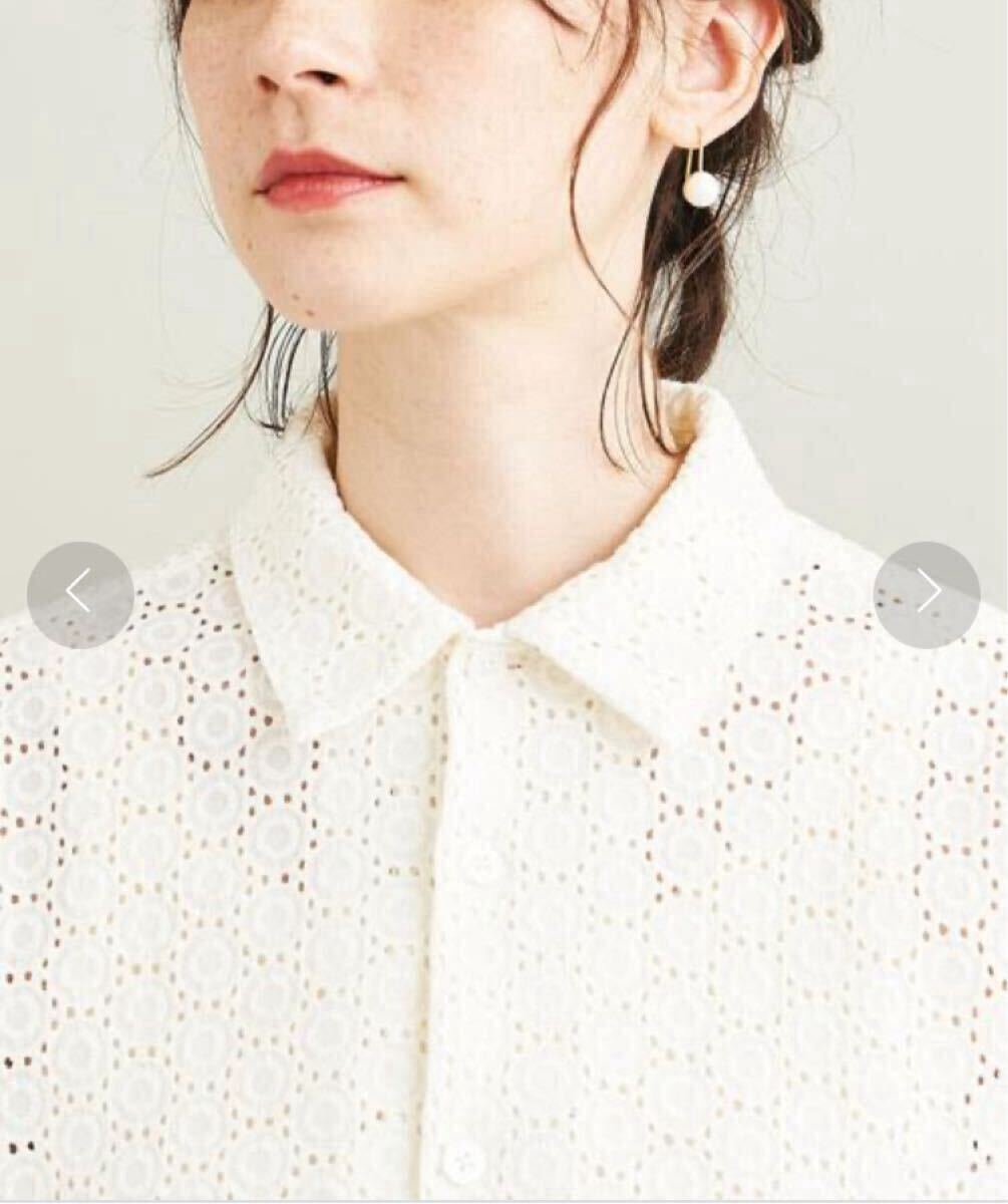 贅沢にあしらわれた、総カットワークレースが目を引くシャツ。