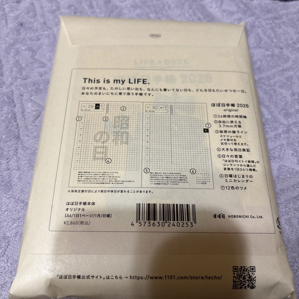 ほぼ日手帳/本体、A6文庫本サイズ/2026年、1月、日曜はじまり、未使用ですが購入時より袋の角にシワがあります。中身は未開封のため確認できませんが…細かく気にならない方でお願いします。NCNRでお願いしますm(_ _)m