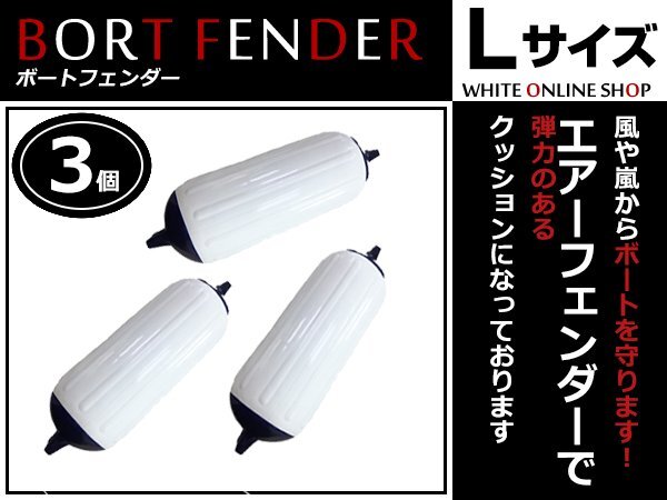 送料無料 弾力製 抜群! ボートフェンダー エアーフェンダー 接触ダメージ緩和!ボートを守る 230×700 白×青 3個 Lサイズ