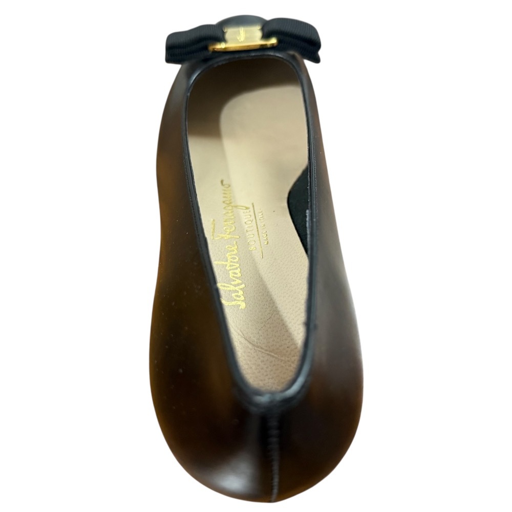 未使用 Salvatore Ferragamo サルヴァトーレフェラガモ カーフレザー ヴァラリボン ローヒール パンプス サイズ7B 約24cm ブラック