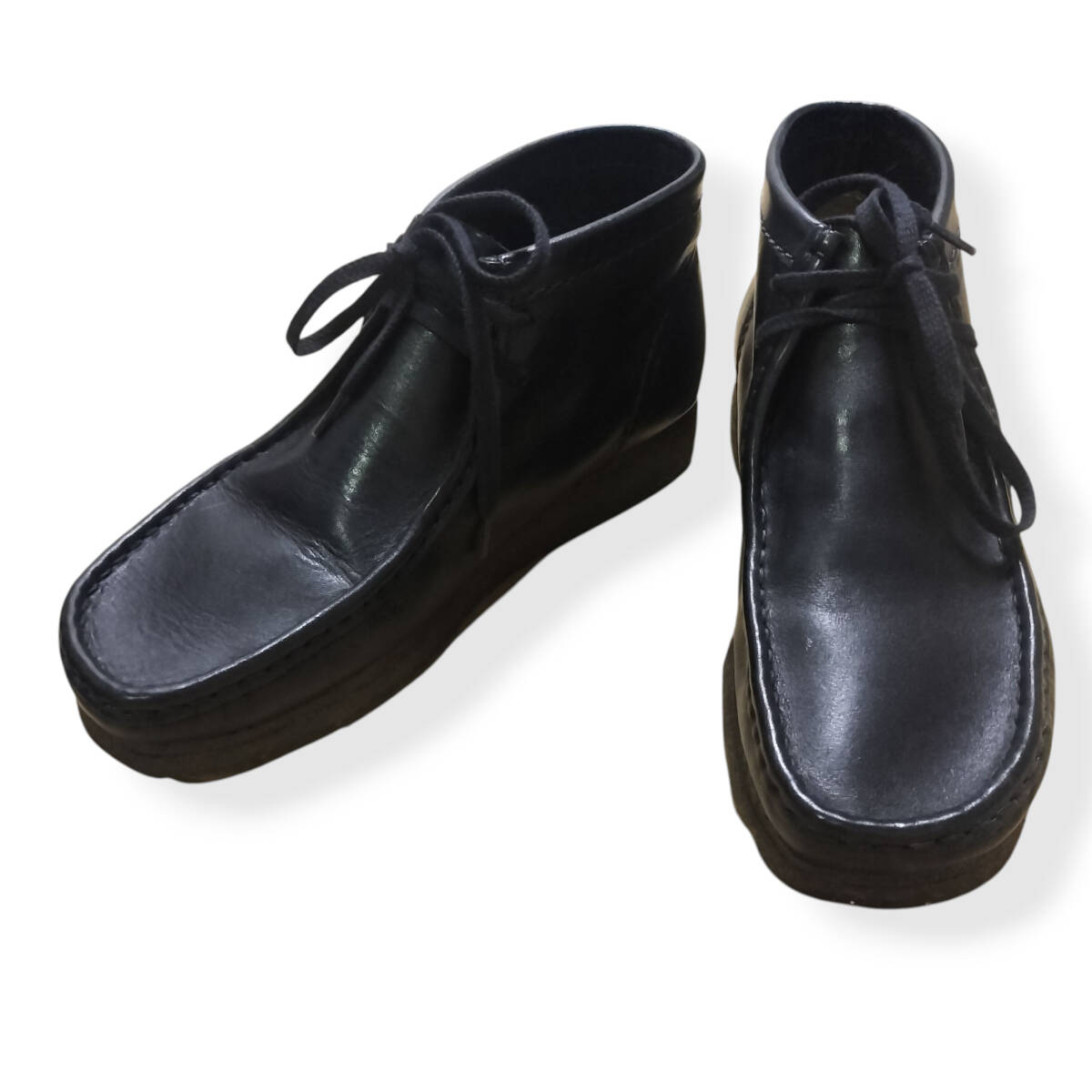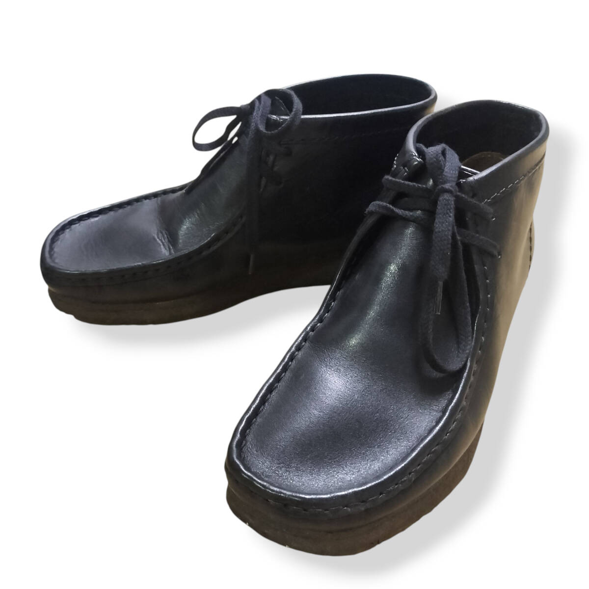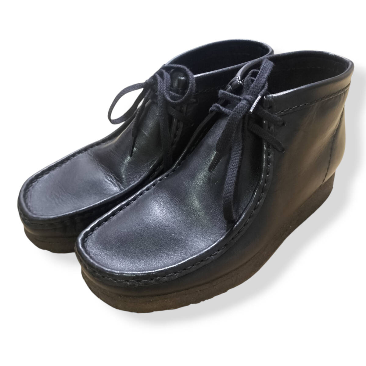 【美品】CLARKS クラークス ワラビー Wallabees ブーツ 黒 US 7.5 UK 6.5 25cm 25.5cm チャッカブーツ ブラック レザー