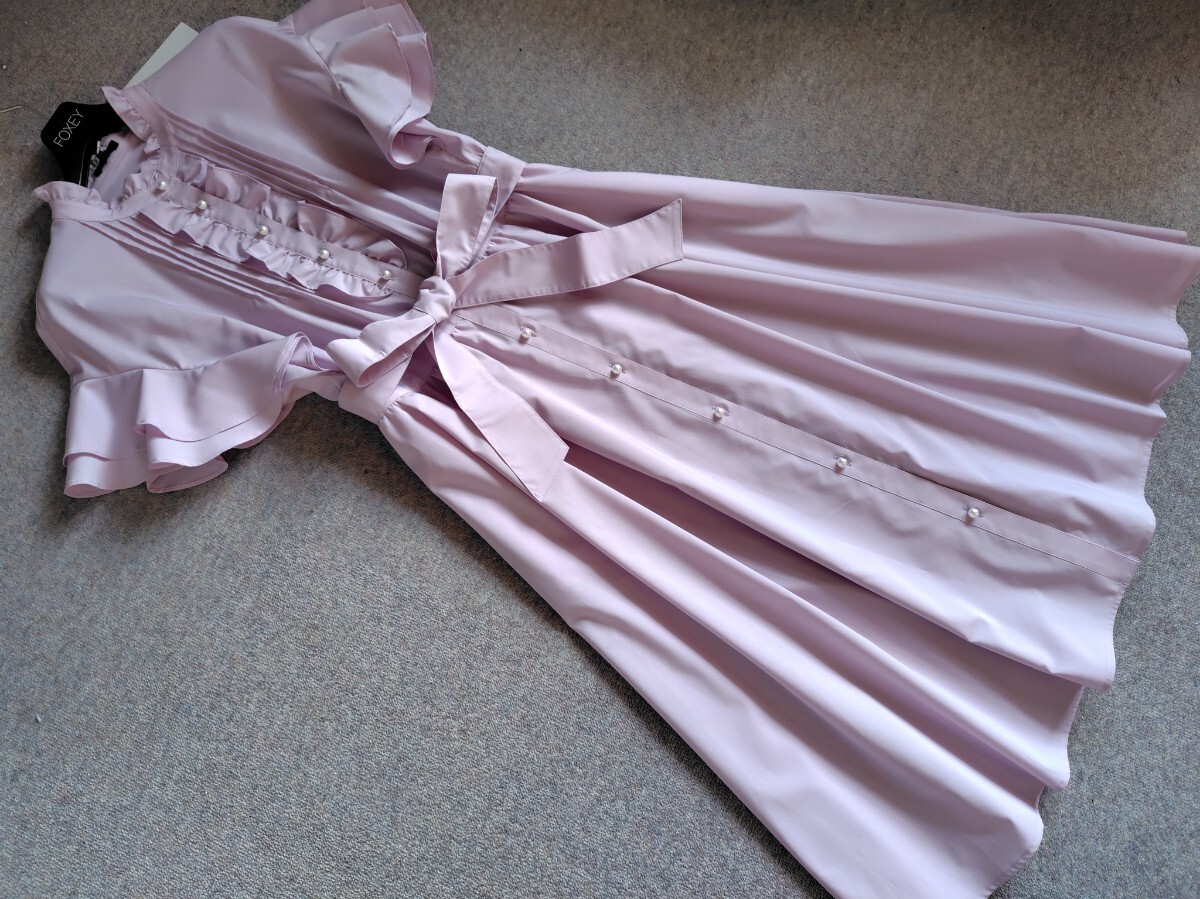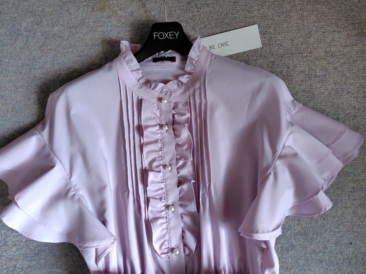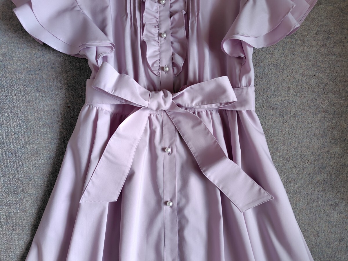 実寸は 肩幅51㎝脇下見幅50㎝ウエスト幅38cm 袖丈(フリル部分)11cm 着丈(背中心フリル部分から)1014cm (素人の採寸につき許し下さい)。