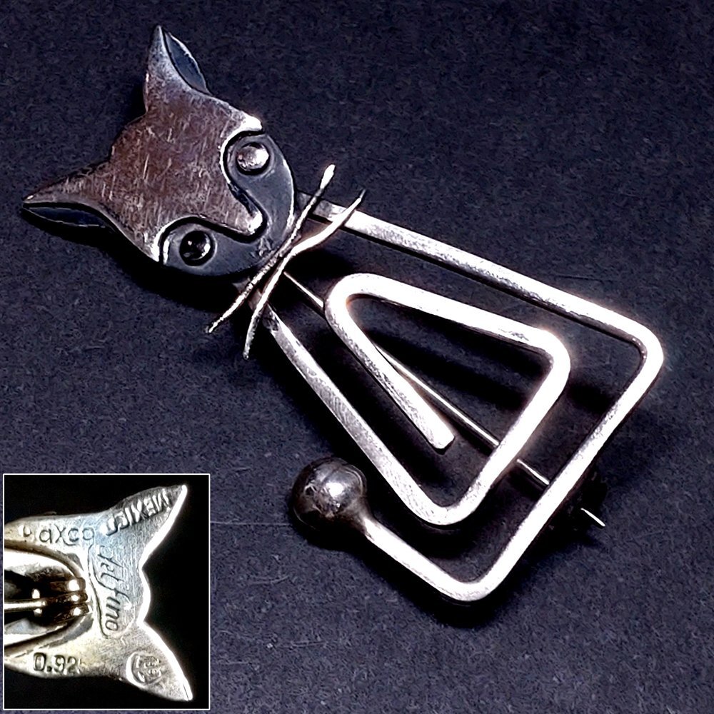 【侍】メキシコ シルバー ヴィンテージ 1950~60’s Taxco Delfino タスコ デルフィーノ 猫 ピンブローチ 20=776
